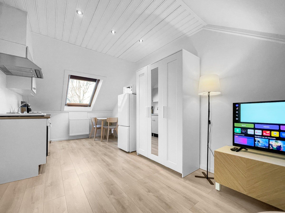 Beschrijving Aanvragen uitsluitend via Gezamenlijke entree, hal, entree woning op de eerste etage, trapopgang naar de studio op de tweede etage. . Luxe afgewerkte woon / eetkamer met open keuken. ...