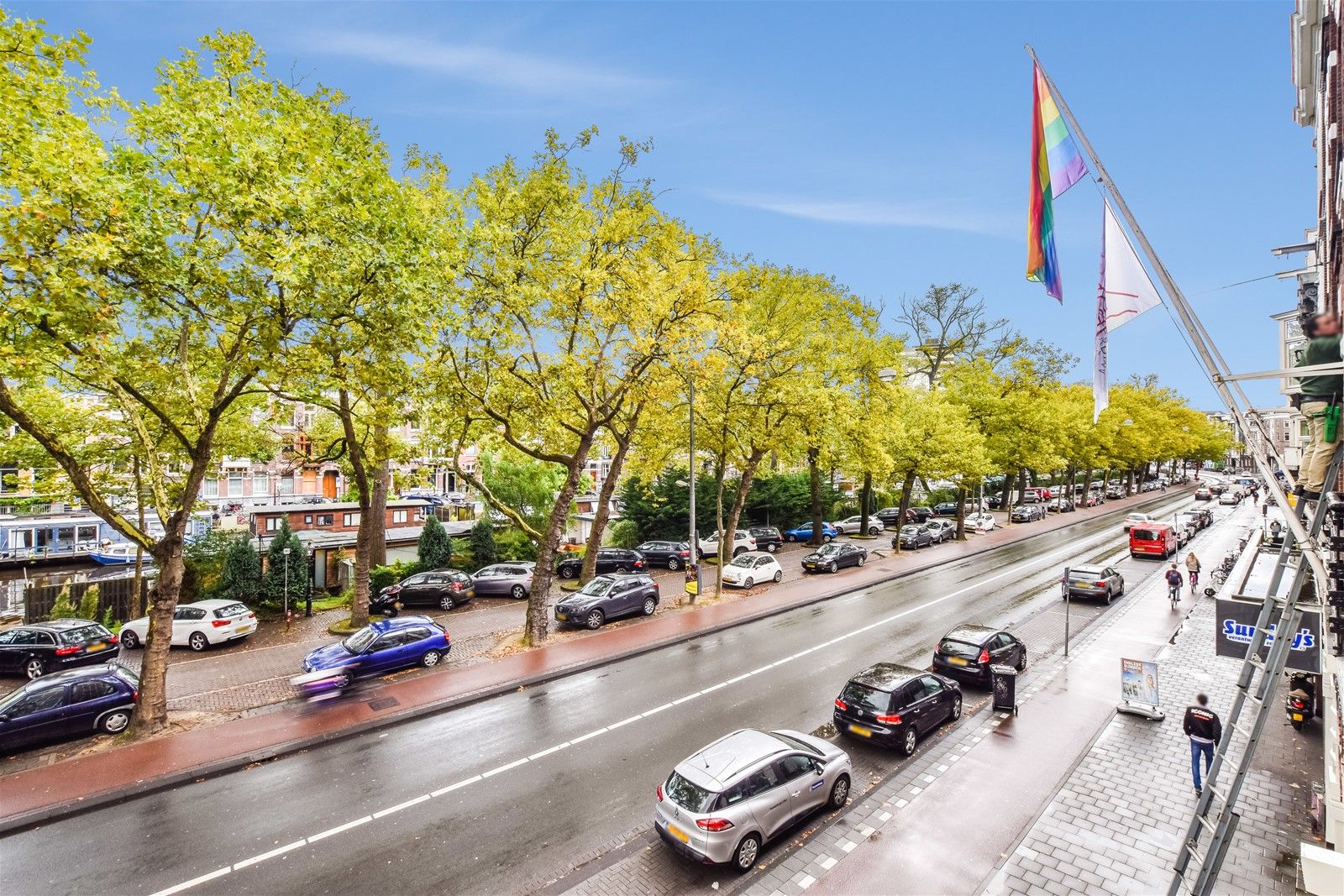 MODERN EN LICHT DRIEKAMER APPARTEMENT, GELEGEN AAN DE STADHOUDERSKADE OMSCHRIJVING / INDELING Entree, hal, open keuken voorzien van inbouwapparatuur, woonkamer aan de voorzijde van de woning met Fran...