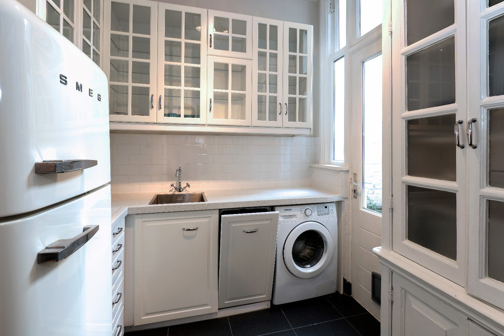 This monumental 3 room apartment at ground level with an upstairs room on the first floor, very centrally located near the centre in a quiet street. Close to Fredrikstraat and Denneweg with shops and ...