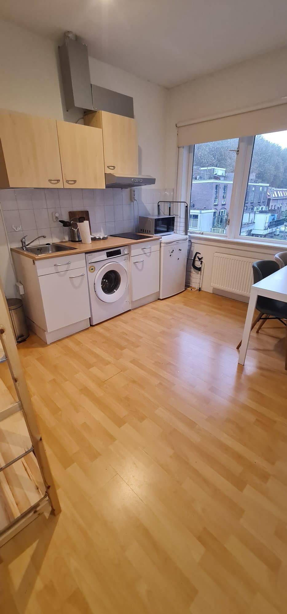 Mooie studio in Hartje Utrecht! De Studio: Bevindt zich op de eerste verdieping Woonkamer/slaapkamer voorzien van Laminaatvloer Beschikt over een open keuken met elektrische kookplaat, afzuigkap en ko...