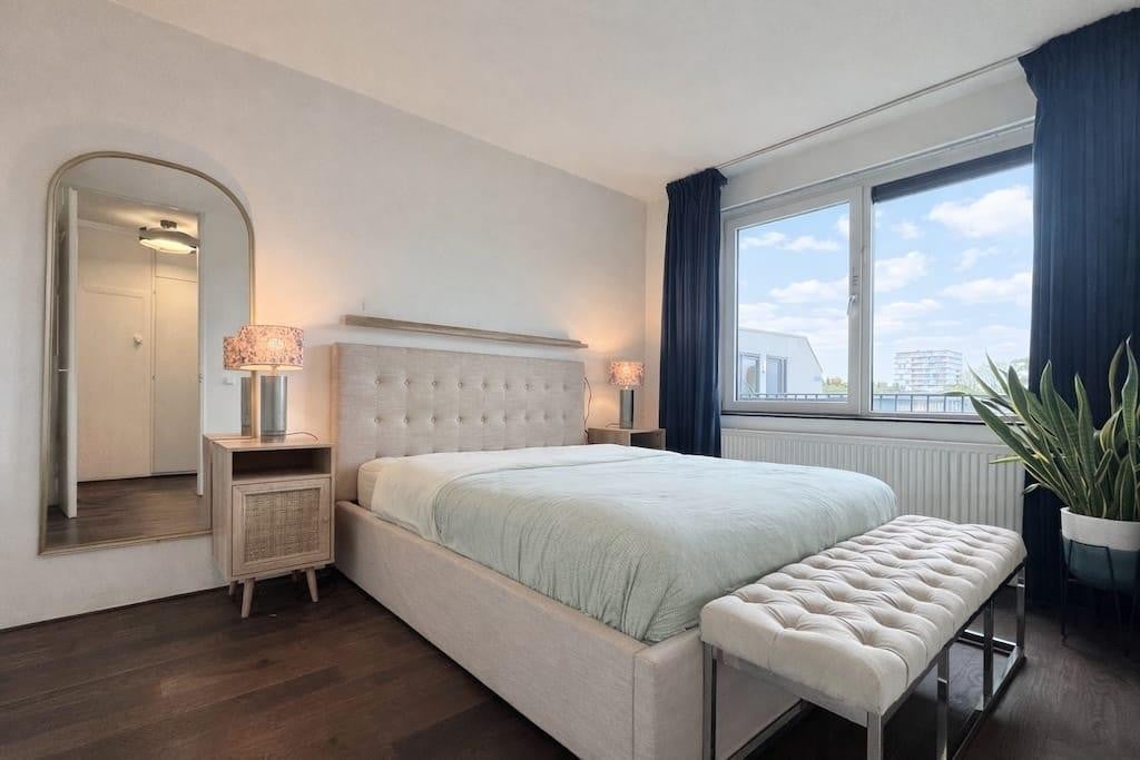 Beschrijving Charmant gemeubileerd twee-slaapkamer appartement (80 m²) gelegen op de vierde verdieping aan de Wolbrantskerkweg. Dit mooie appartement beschikt over twee slaapkamers, een badkamer, e...