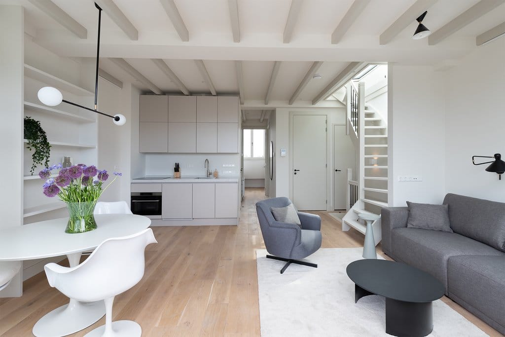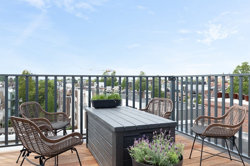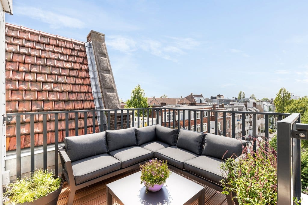 Fantastisch volledig gemeubileerd 2 slaapkamer appartement met lift direct in woning van ca. 65 m2, met 2 dakterrassen! Wauw! Dit appartement is gelegen op de vierde en bovenste etage van dit complee...