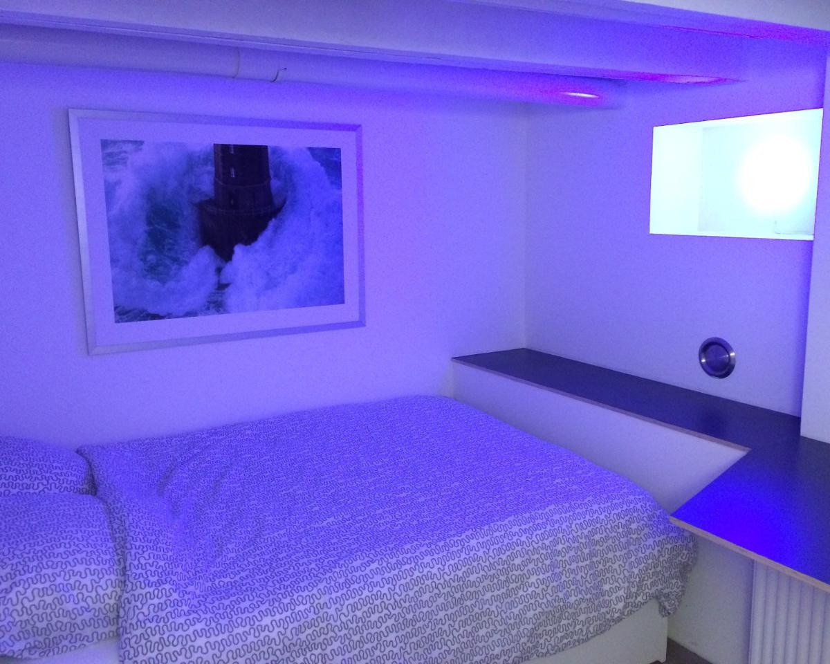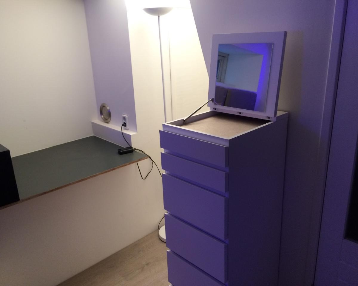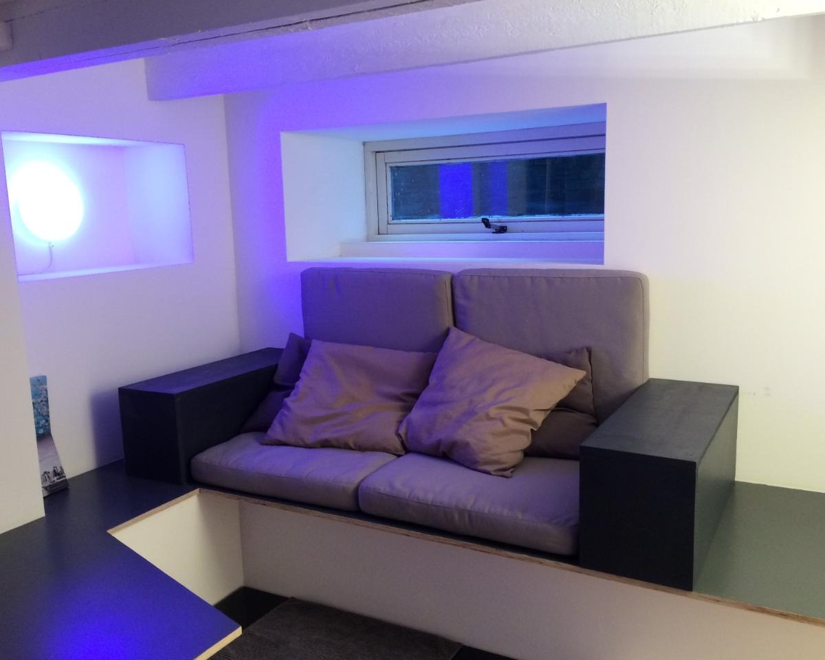 Deze souterrain kamer is volledig uitgerust. Tweepersoonsbed, grote flatscreen-tv beweegbaar in alle richtingen, ruime opbergmogelijkheden, een zithoek en een ruim bureau. Er is daglicht, goede luchtt...