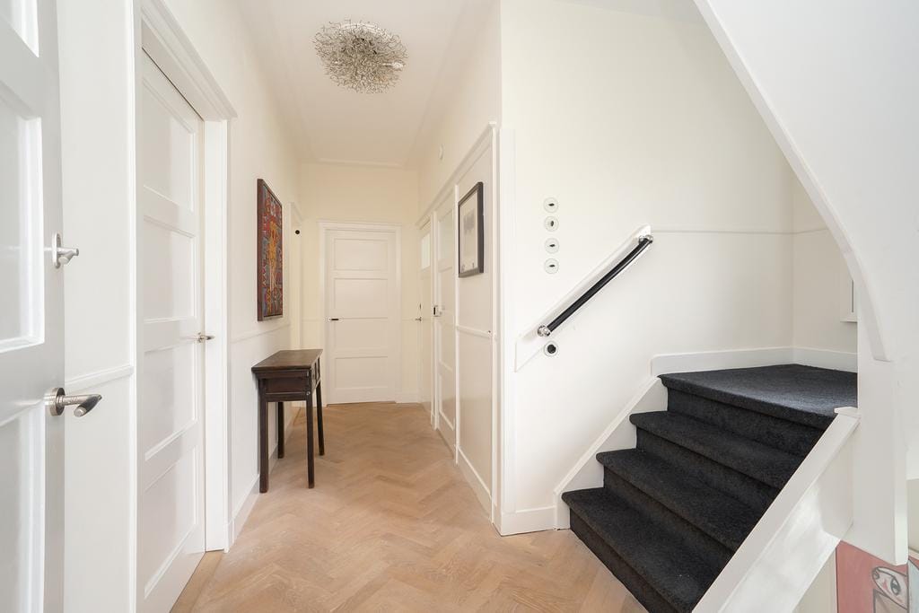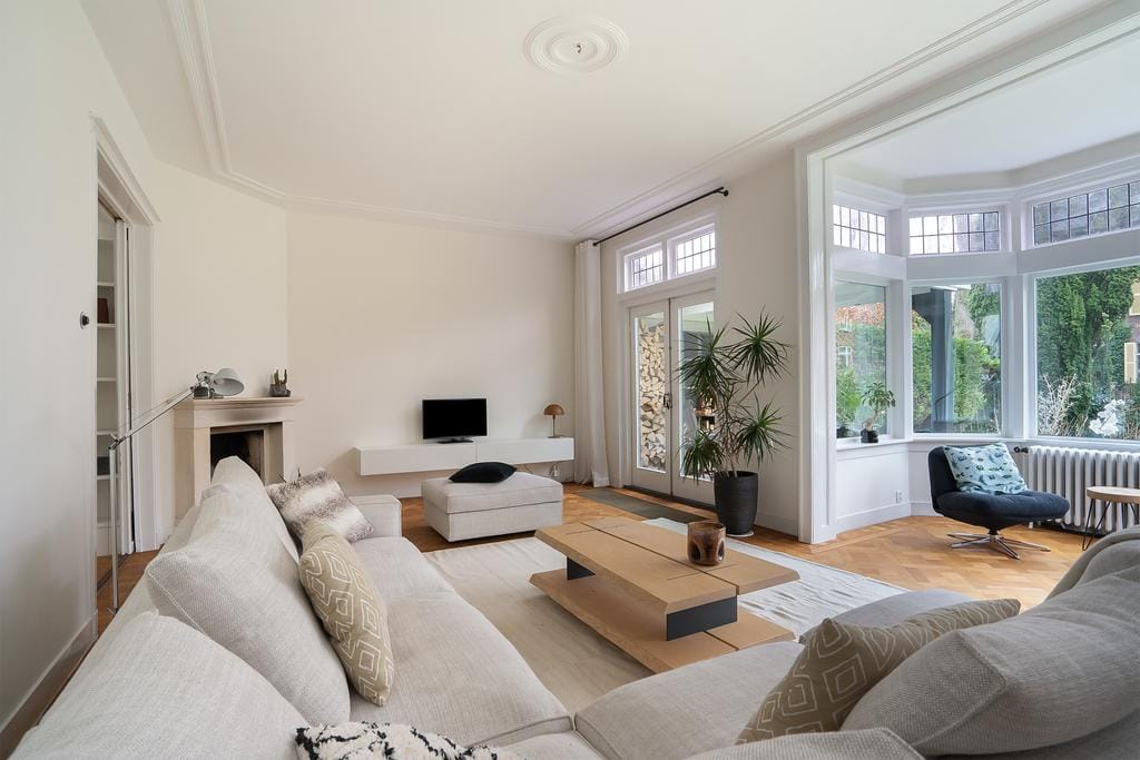 FEEL HOME Charming FULLY FURNISHED semi-detached house (244 m2) in Wassenaar South with 7 (bed)rooms and 2 bathrooms. Located on the quiet Van Calcarlaan on a beautiful plot (604 m2) with a unique vi...