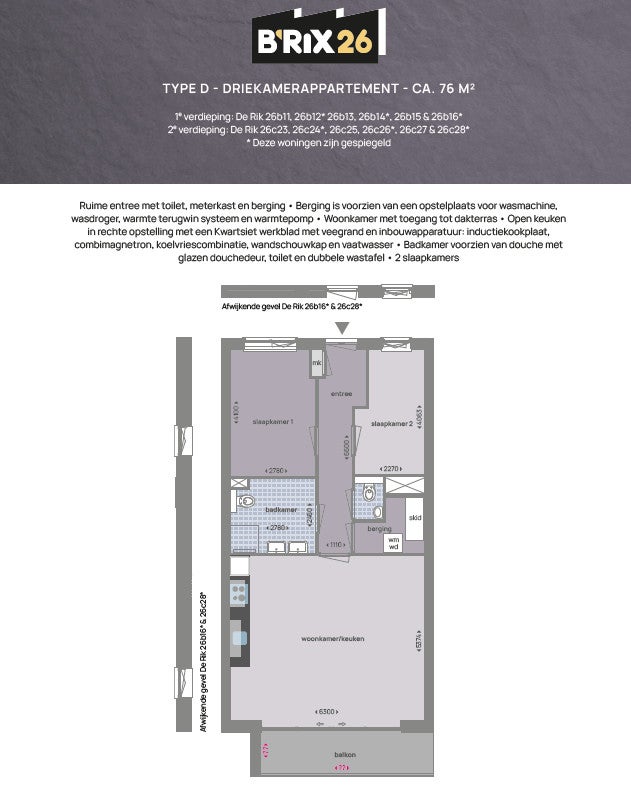 Beschrijving Net buiten de vesting, op de plek waar vroeger het postkantoor aan De Rik was gevestigd, verrijst momenteel een markant en robuust appartementencomplex genaamd B'RIX26. Een fraai gebou...
