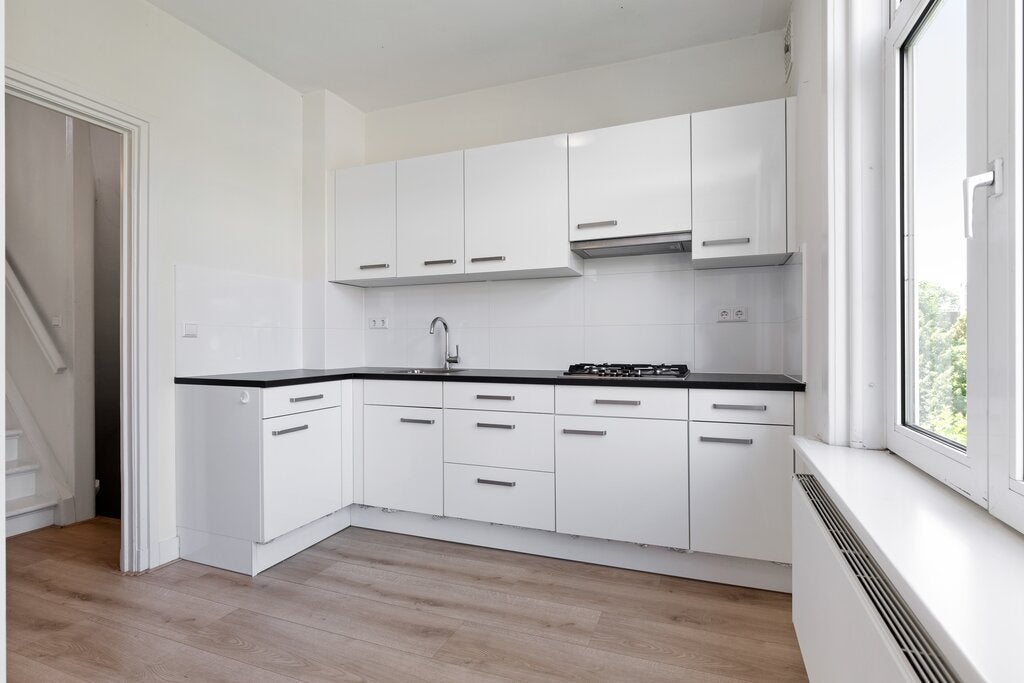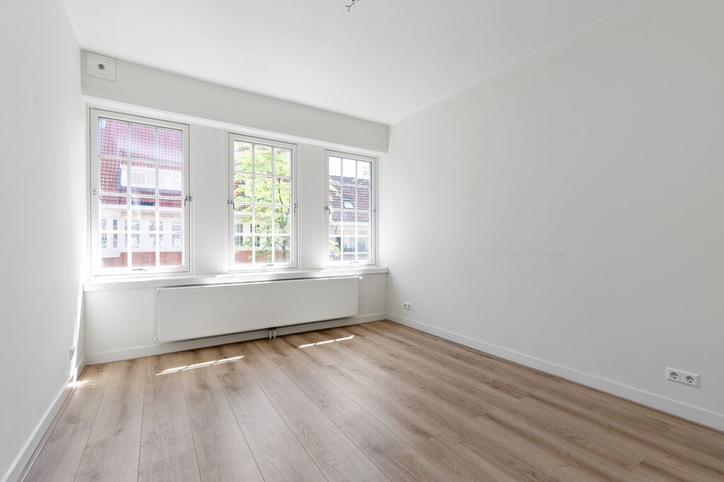 Beschrijving Lichte en ruime dubbele bovenwoning tussen Oud West en Amsterdam Zuid. Onelfurnished appartement van ongeveer 107 m2 op de tweede en derde verdieping met een privé-ingang. Drie slaa...