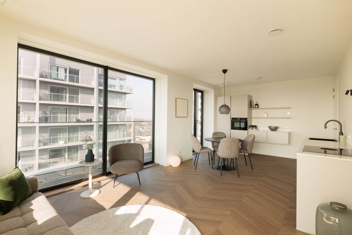 Beschrijving Wonen op de twaalfde verdieping met een spectaculair uitzicht over de stad! Op de twaalfde verdieping van The Starling ligt dit hoogwaardig afgewerkte en volledig gemeubileerde driekam...