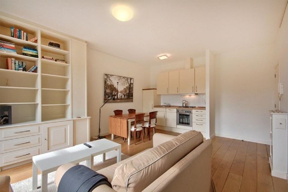 Beschrijving Zeer charmant gemeubileerd 1-slaapkamer appartement van 40m2 met terras en dakterras gelegen in het Museumkwartier en naast het Vondelpark. Trap naar de 3e verdieping waar je toegang k...