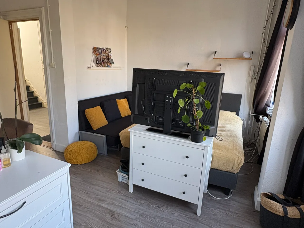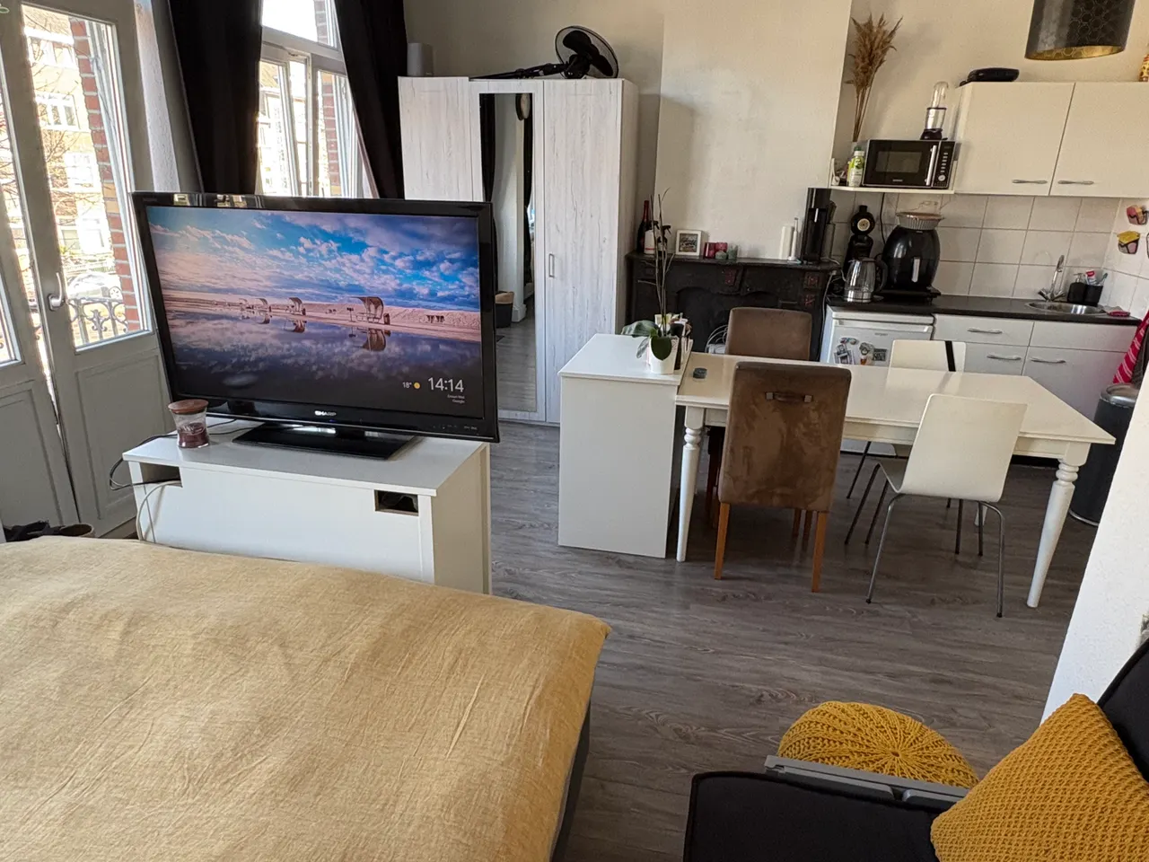 Bright spaciuos room with own kitchen unit and a French balcony situated on the first floor in a small student house. The bathroom with shower and toilet is shared with 2 other students. The student...