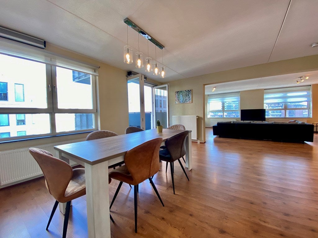 Beschrijving ROTTERDAM KOP VAN ZUID: Fantastische, ruime en volledig gemeubileerde woning met fenomenaal uitzicht. Geschikt voor twee woningdelers en voorzien van een privéparkeerplaats in de onder...