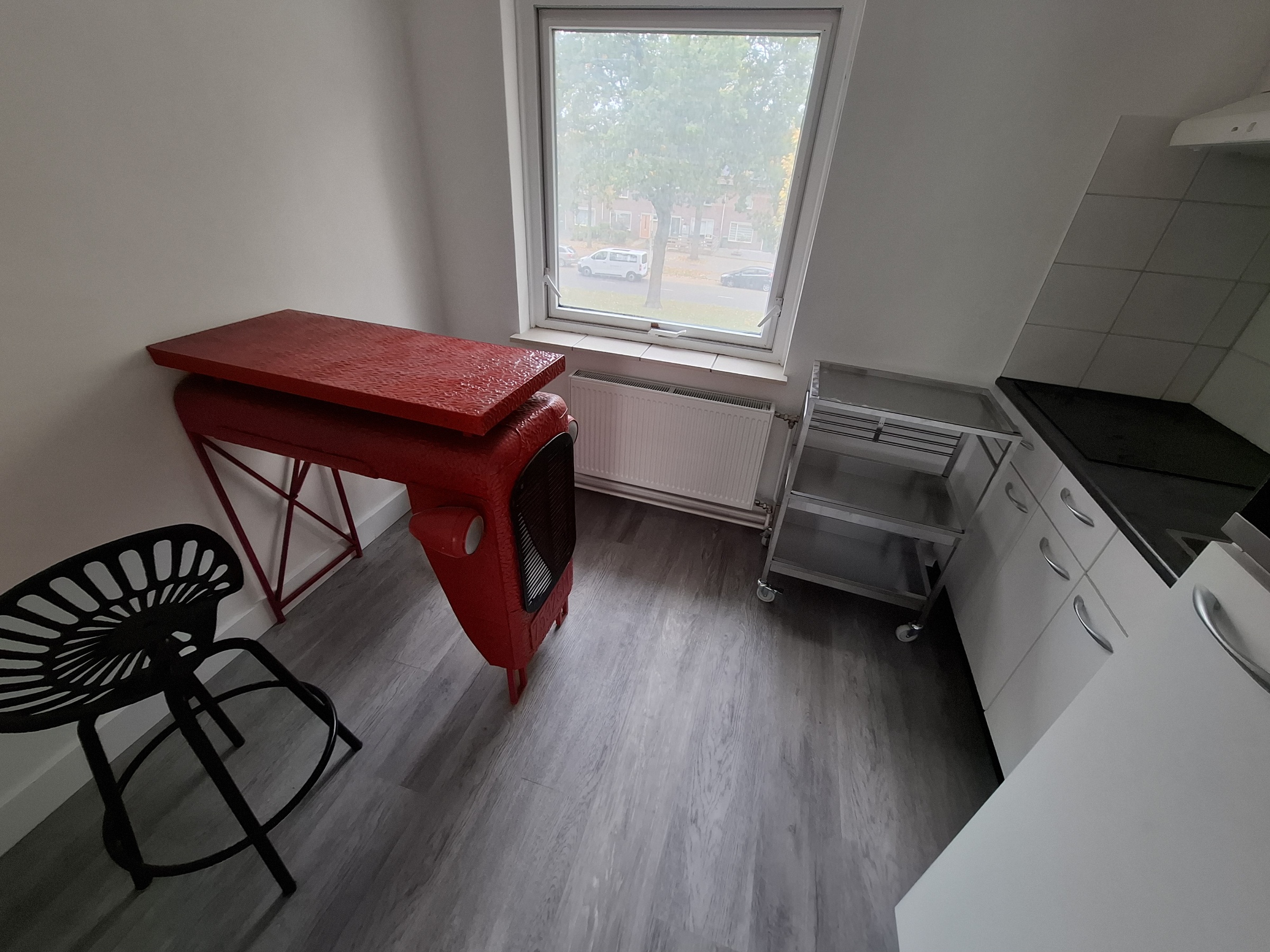 Gestoffeerde en gemeubileerde kamer op tweede etage met pvc laminaar vloer, gordijnen, en balkon. De kamer bestaat uit een ruime kast, 1 persoons bed, bureau en stoel. De gehele woning is recentelijk ...