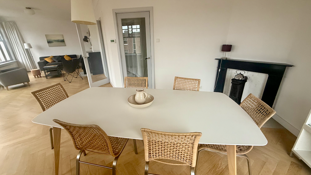 Beschrijving Ruim en licht hoekappartement met twee slaapkamers en balkon aan de Vondelstraat. Dit unieke hoekappartement heeft ramen van links naar rechts, waardoor het licht door de hele woonkam...