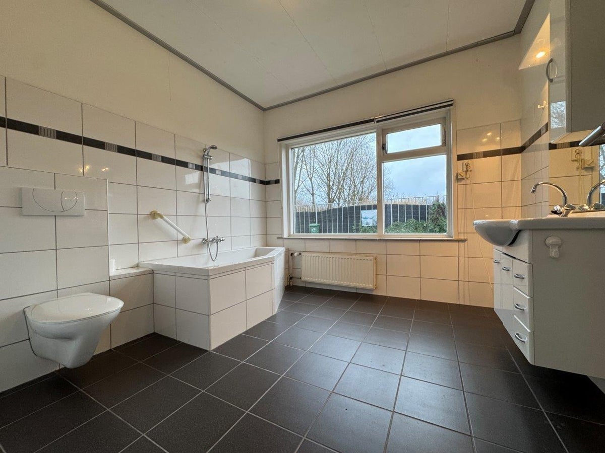 Beschrijving Op bedrijventerrein gelegen bungalow met riante living, woonkeuken, tuin, 3 slaapkamers en 2 badkamers. Entree, hal met toegang tot 2 slaapkamers. Badkamer . ligbad, wastafel met me...