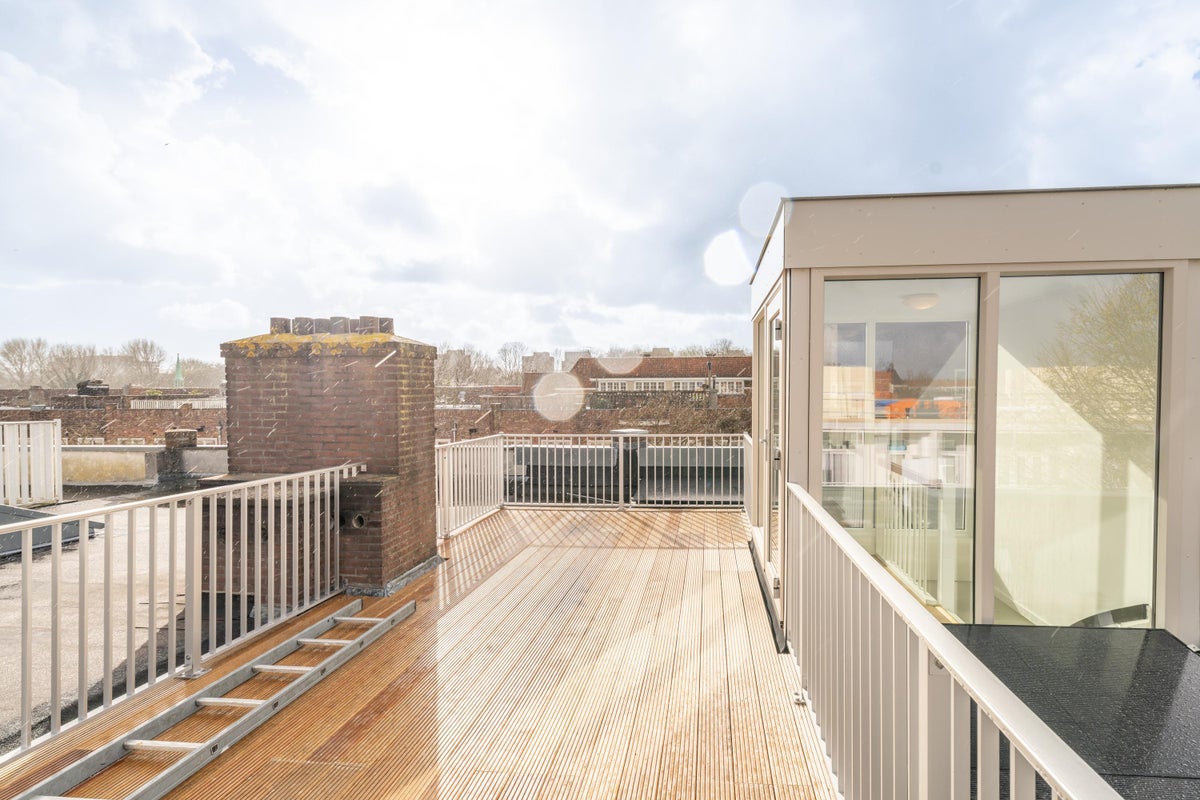 Beschrijving Fijn en goed ingedeeld 3-kamerappartement met een waanzinnig dakterras, gelegen op een aantrekkelijke locatie. INDELING De lichte woonkamer beschikt over een half open keuken, voorzien...