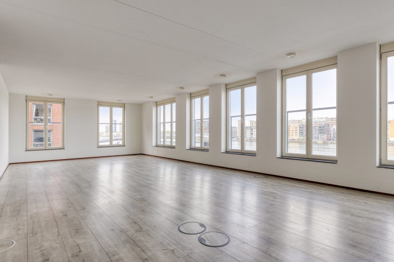 Zeer ruim en licht hoekappartement gelegen aan noordzijde van het gebouw met een schitterend uitzicht over het IJ. Het loftachtige appartement met hoge plafonds van 2.65m beschikt over een luxe kookei...