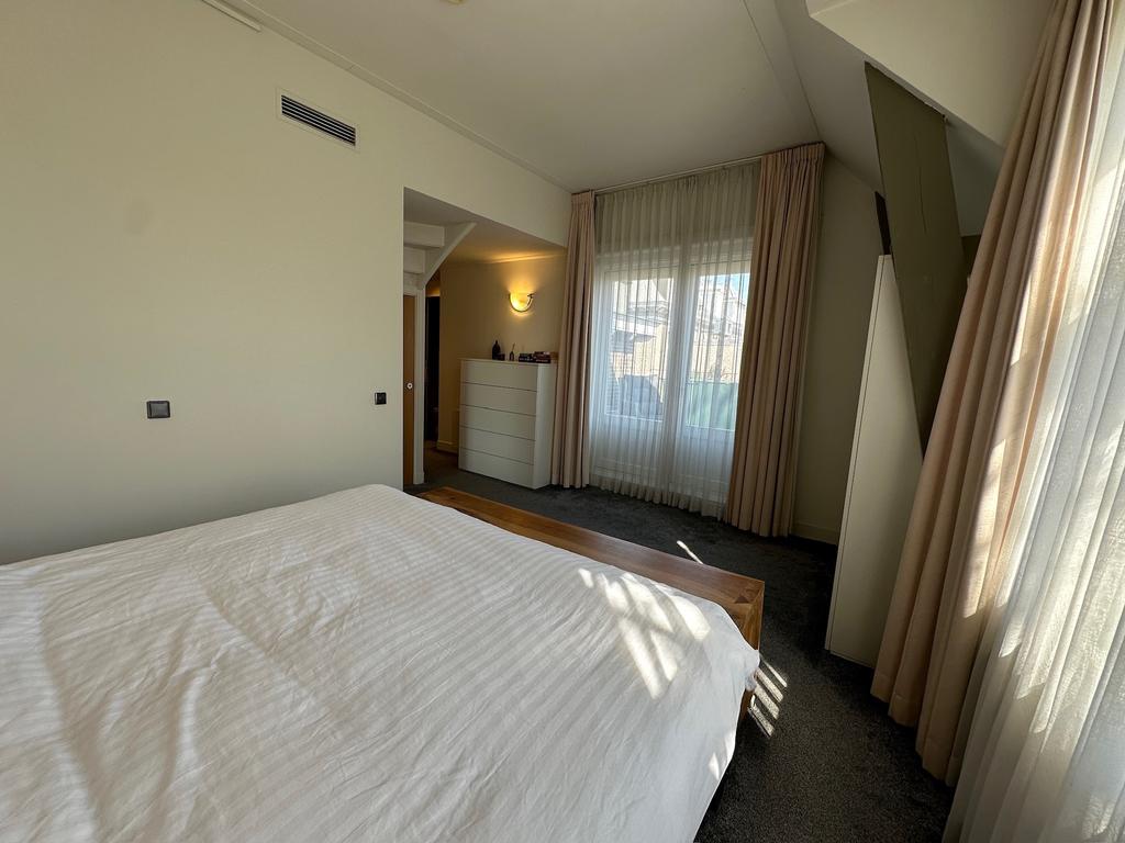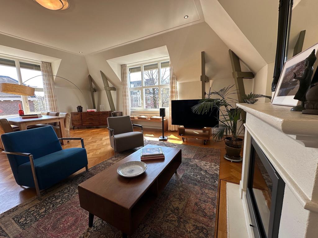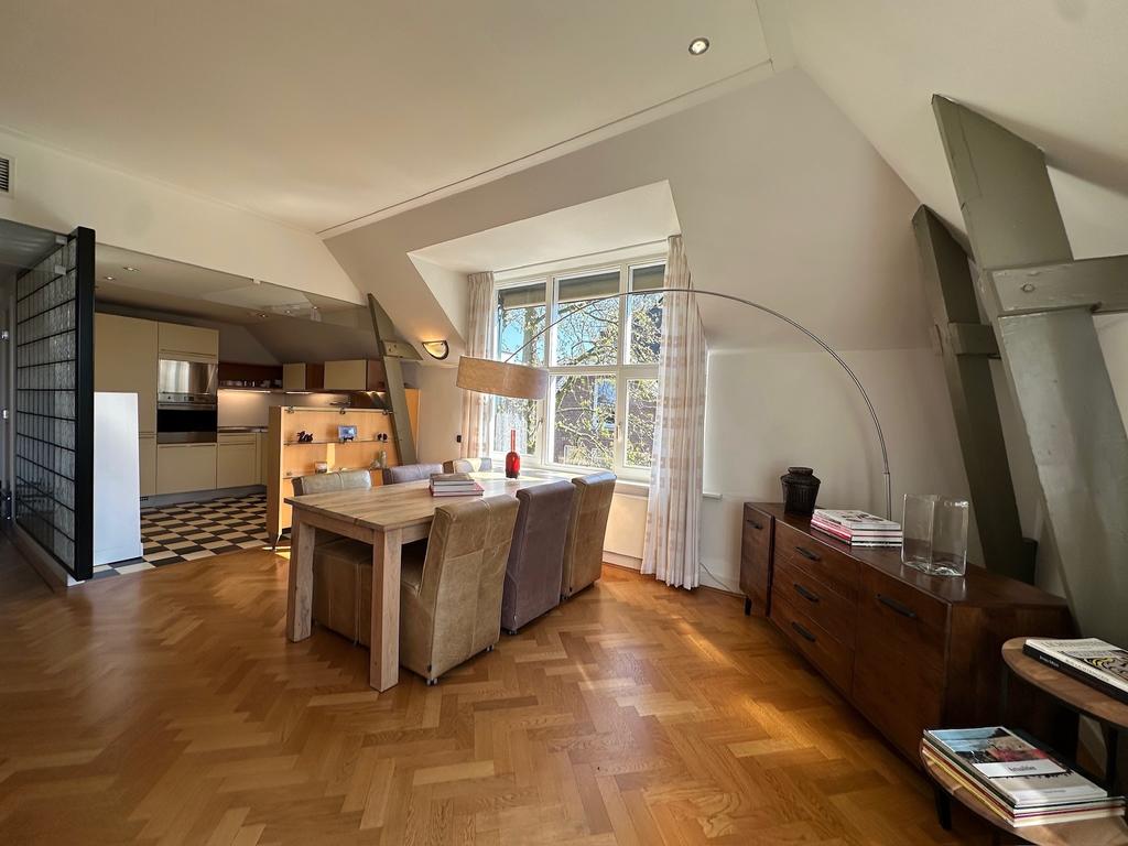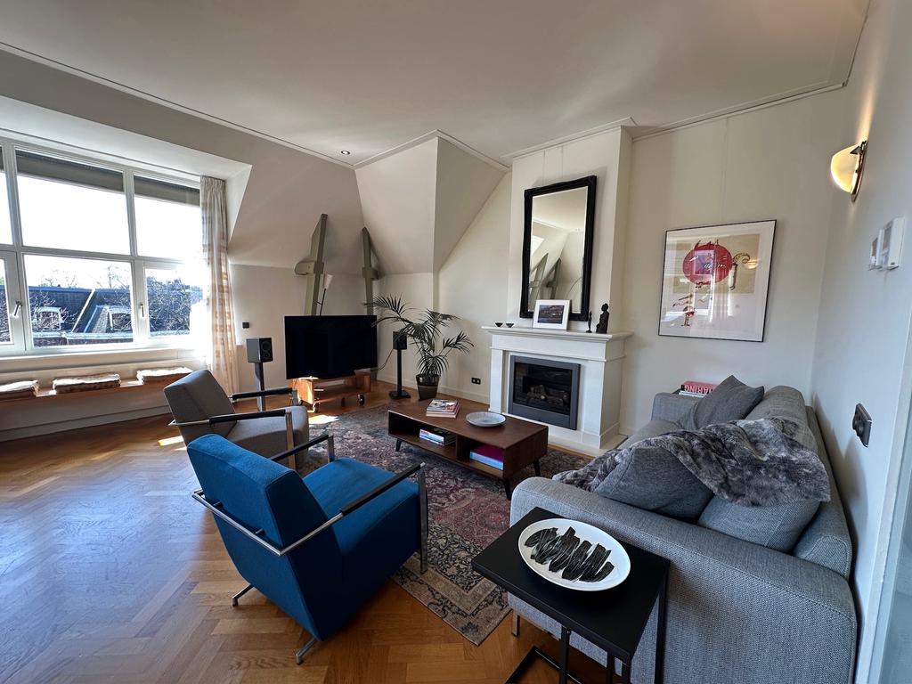 Beschrijving Mooie, volledig gemeubileerde duplex - twee slaapkamer appartement met dakterras in gerenoveerd gebouw dicht bij het Vondelpark in Amsterdam Oud Zuid. Toegang tot het appartement via d...