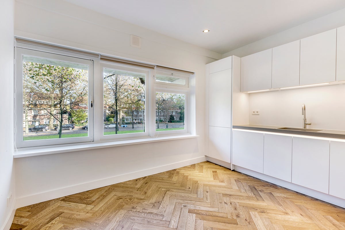 Beschrijving Appartement van 135 m² in Art-Deco stijl met onder andere glas in lood, hoge plafonds en originele details. Het appartement heeft drie slaapkamers en twee badkamers, beschikt over hoo...