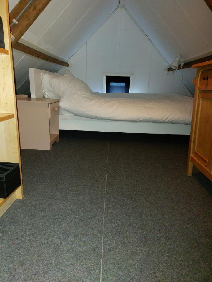 Een leuk huisje, als kamer te huur voor studente. Woonkamer met keuken beneden en slaapkamer boven. Sanitair is aanwezig net buiten de kamer. Overdekte fietsenstalling.
