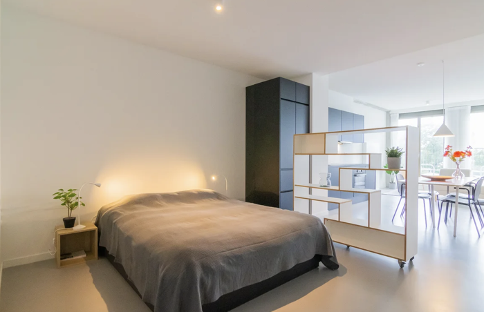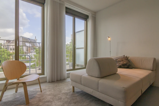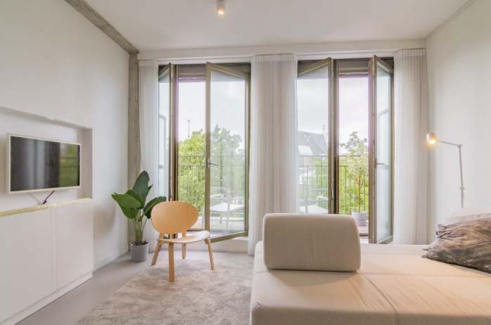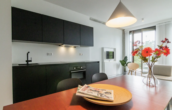 Deze zeer mooie, volledig gemeubileerde eenkamerappartement / LOFT / STUDIO, gelegen op de 4e verdieping, met een weids uitzicht over de groene omgeving te huur! Het appartement heeft een super strakk...