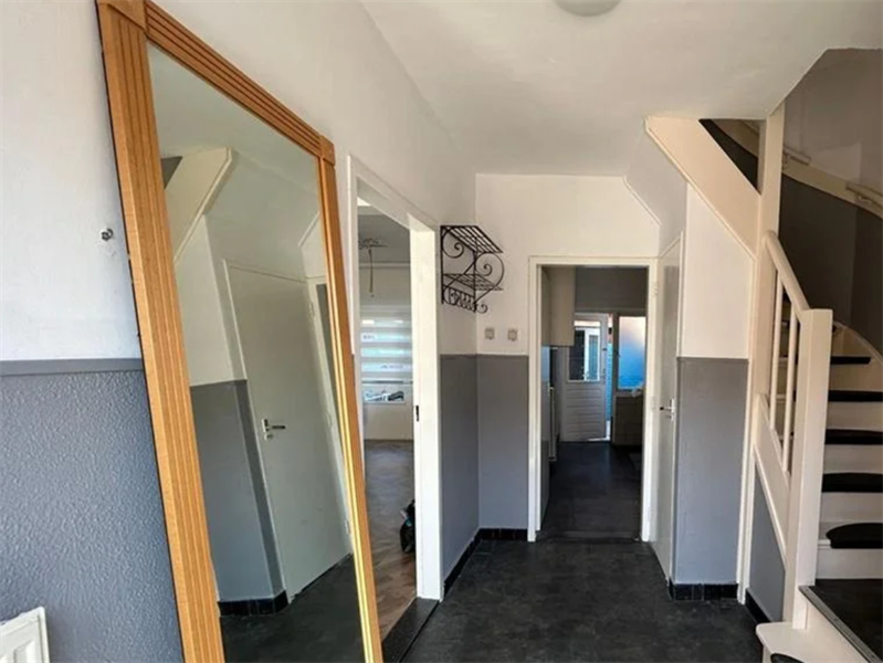Ruime entree met toegang tot de woonkamer, gesloten keuken, toilet en trap naar de eerste verdieping. Doorzon woonkamer van +/- 28m2 met openslaande deuren naar de ruime tuin welke voorzien is van een...