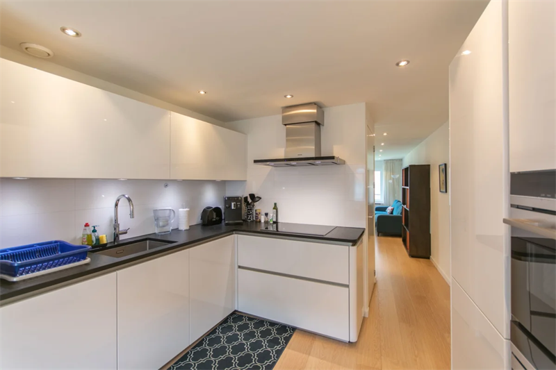 APPARTEMENT Keuken: Je komt het appartement binnen via de centrale hal. Direct naast de ingang vind je de volledig uitgeruste keuken. De keuken omvat een vaatwasser, inductiekookplaat, magnetron, oven...
