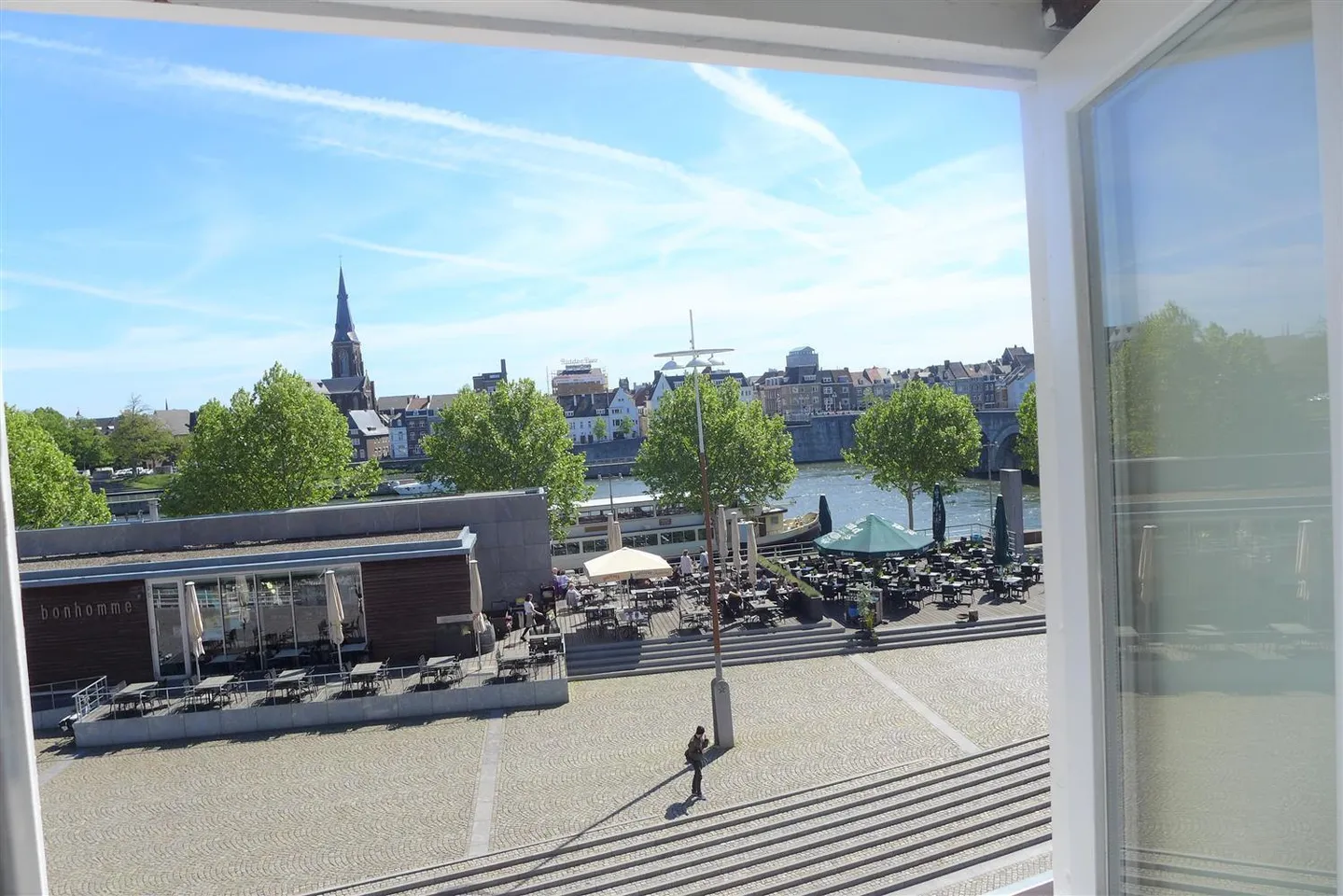 Beautiful apartment in a monumental building in the center of Maastricht overlooking the Maas. The apartment consists of a bright living room with open kitchen, spacious bedroom, bathroom with toilet,...