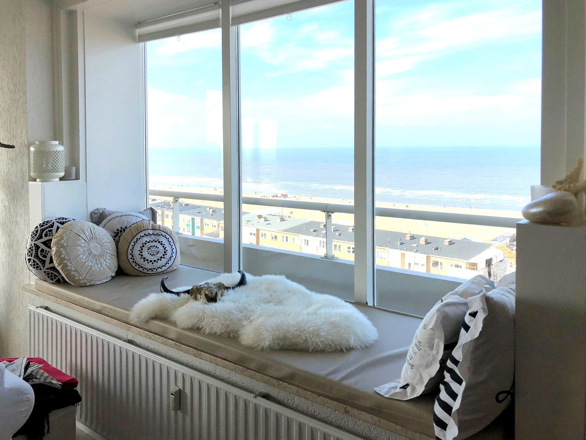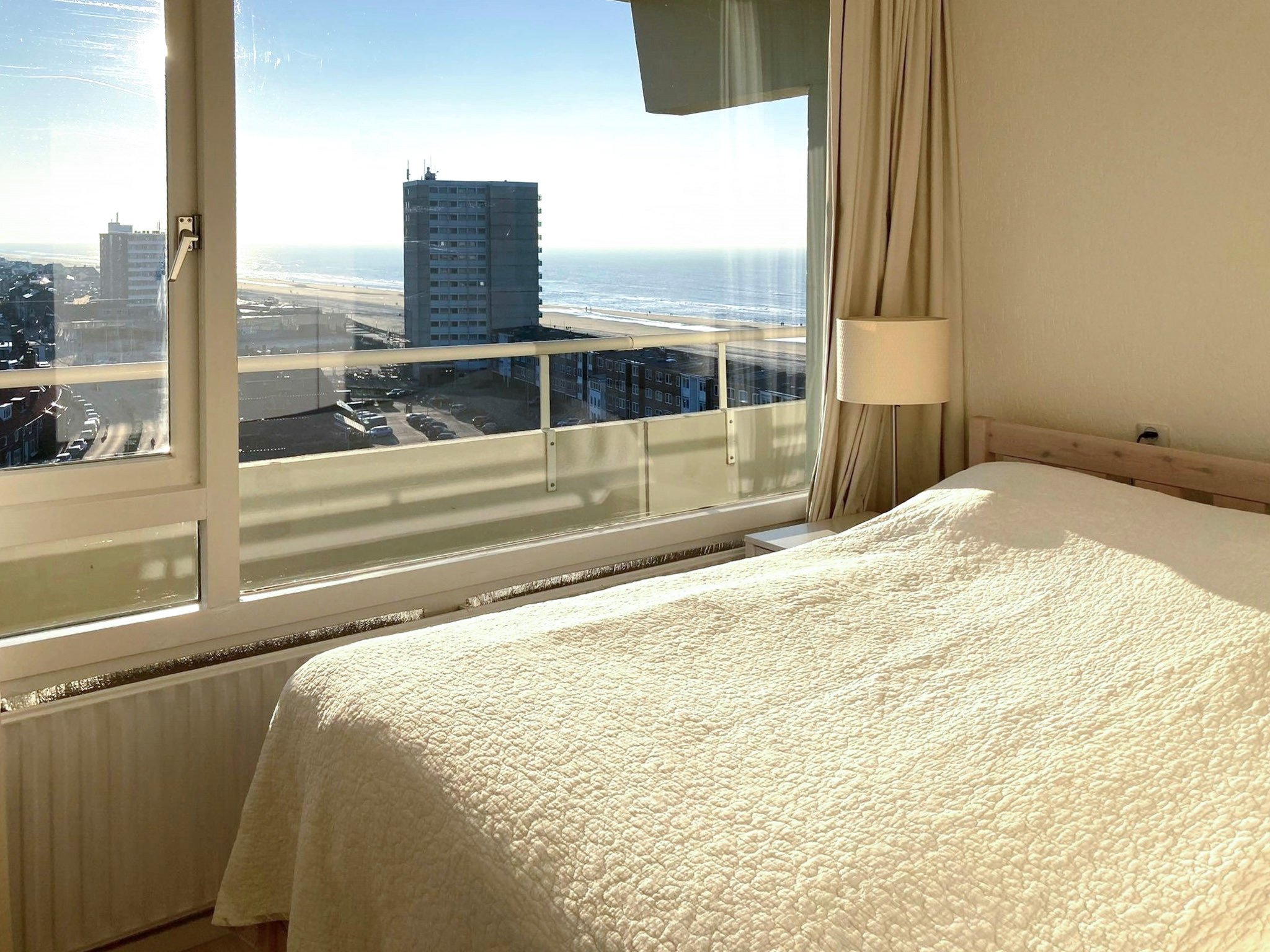 Passage, Zandvoort € ( excl. gas/water/electra ) Heerlijk modern en licht -hoek- appartement met waanzinnig en vrij uitzicht op het strand en wijde omgeving, waar je zo in kunt! Op de 10e en één na ho...