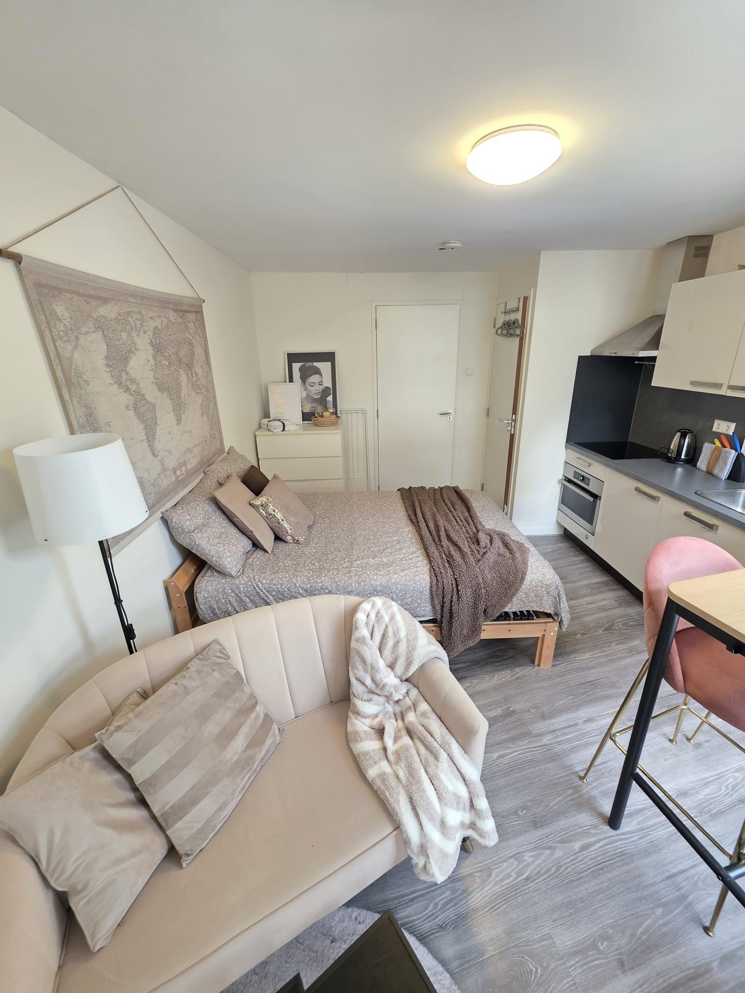 De studio: - Bevindt zich op de eerste verdieping aan de voorzijde - Beschikt over een woon/slaapruimte met een open keuken en een badkamer - Keuken is voorzien van diverse keukenapparatuur - Beschikt...