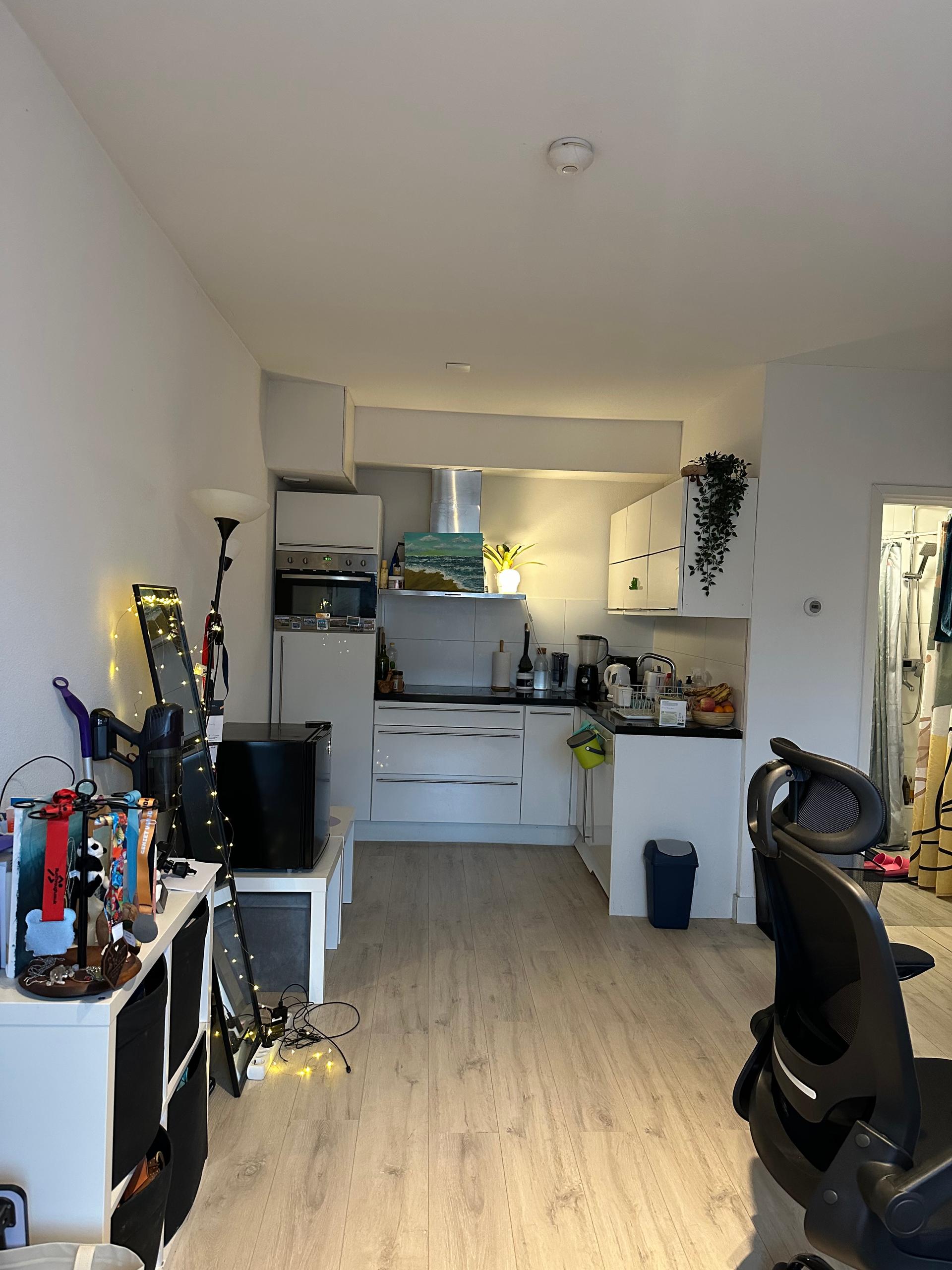 A cosy studio 9 min (by bike) away from the city centre and central station. I'm the current tenant and I'm searching for someone to take over my place and is willing to buy off the desk, floor, lamps...