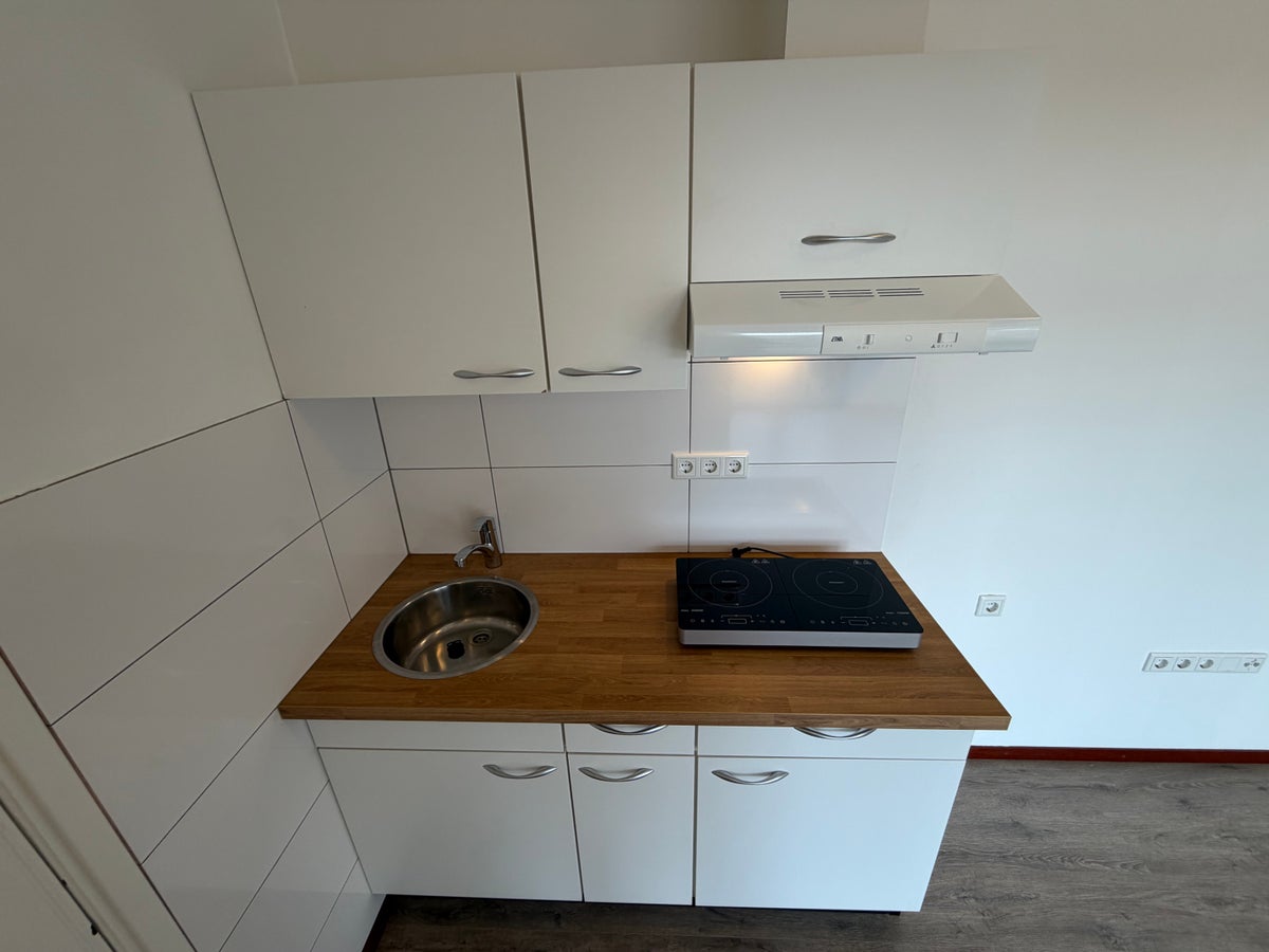 Beschrijving Kamer met eigen keuken en gemeenschappelijk gebruik van badkamer met douches en toilet, separaat toilet, buitenruimte en fietsenstalling. Gunstig gelegen ten opzichte van de Hoge Hotel...