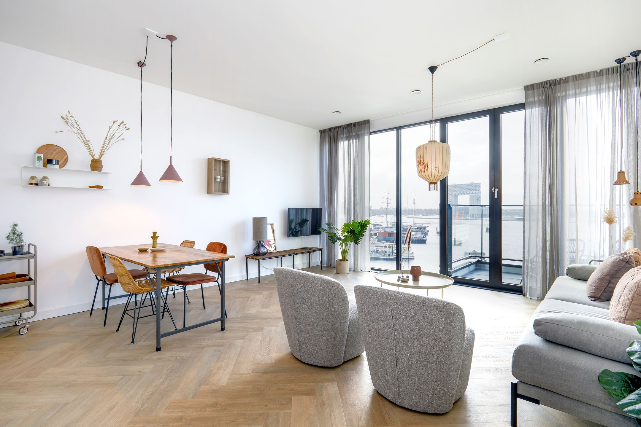 DIRECT BESCHIKBAAR - LUXE VOLLEDIG GEMEUBILEERD EEN-SLAAPKAMER APPARTEMENT MET UITZICHT OP 'T IJ - Beschrijving appartement: Hoogwaardig gemeubileerd 2-kamer appartement van 58 m2 gelegen op de vijf...
