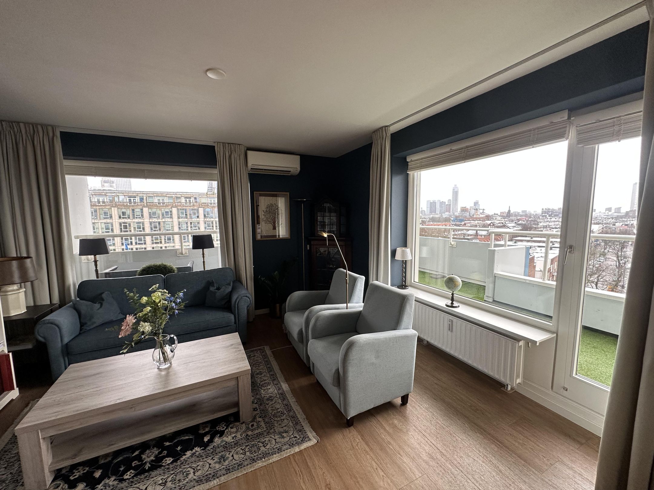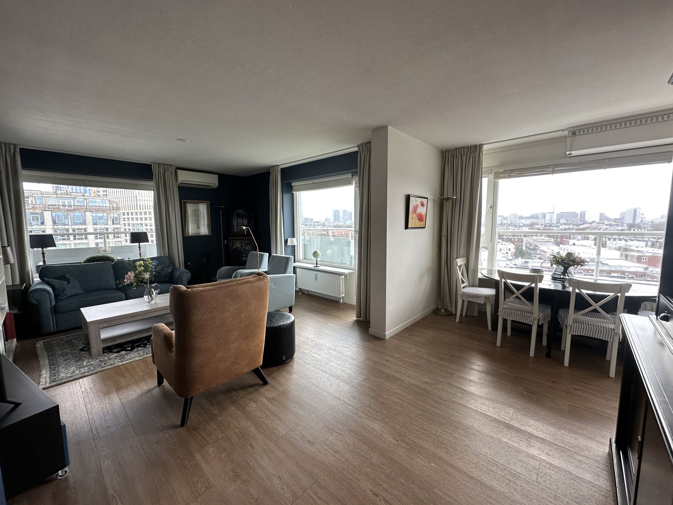 Nu beschikbaar een gemeubileerd 3-kamerappartement met balkon en eigen parkeerplaats op een toplocatie in hartje Rotterdam. Dit lichte en ruime appartement van ca. 88 m² is gelegen op de achtste verdi...