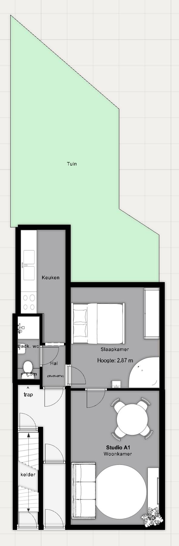 (ENGLISH FOLLOWS DUTCH) 2-kamer appartement met tuin, jacuzzi en grote kelder: voor 1 student voor 2 jaar. De keurig gerenoveerde zelfstandige benedenwoning van ca. 42 m2 ligt in een rustige zijstraat...
