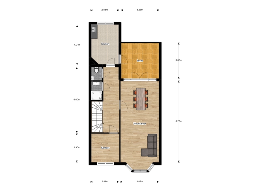 This spacious upper-floor apartment features a roof terrace, four bedrooms, a generous living room, and a separate kitchen with direct access to the roof terrace. The property is situated on a pleasan...