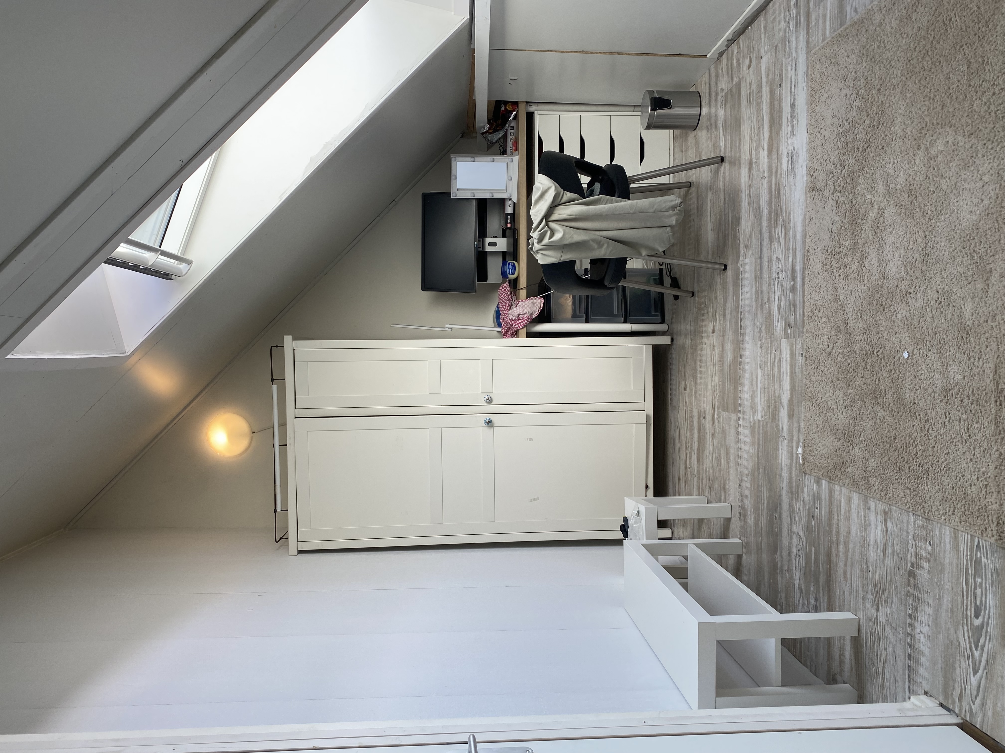 Ruime zolder te huur vlakbij t centrum van leiden met diverse winkels op loopafstand. Woonkamer met eigen keukentje Aparte Slaapkamer Aparte kamer voor kleding en met douche ( wordt nog geplaatst) He...