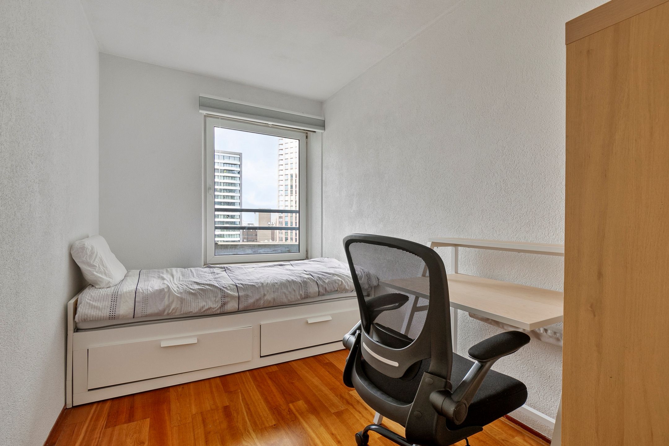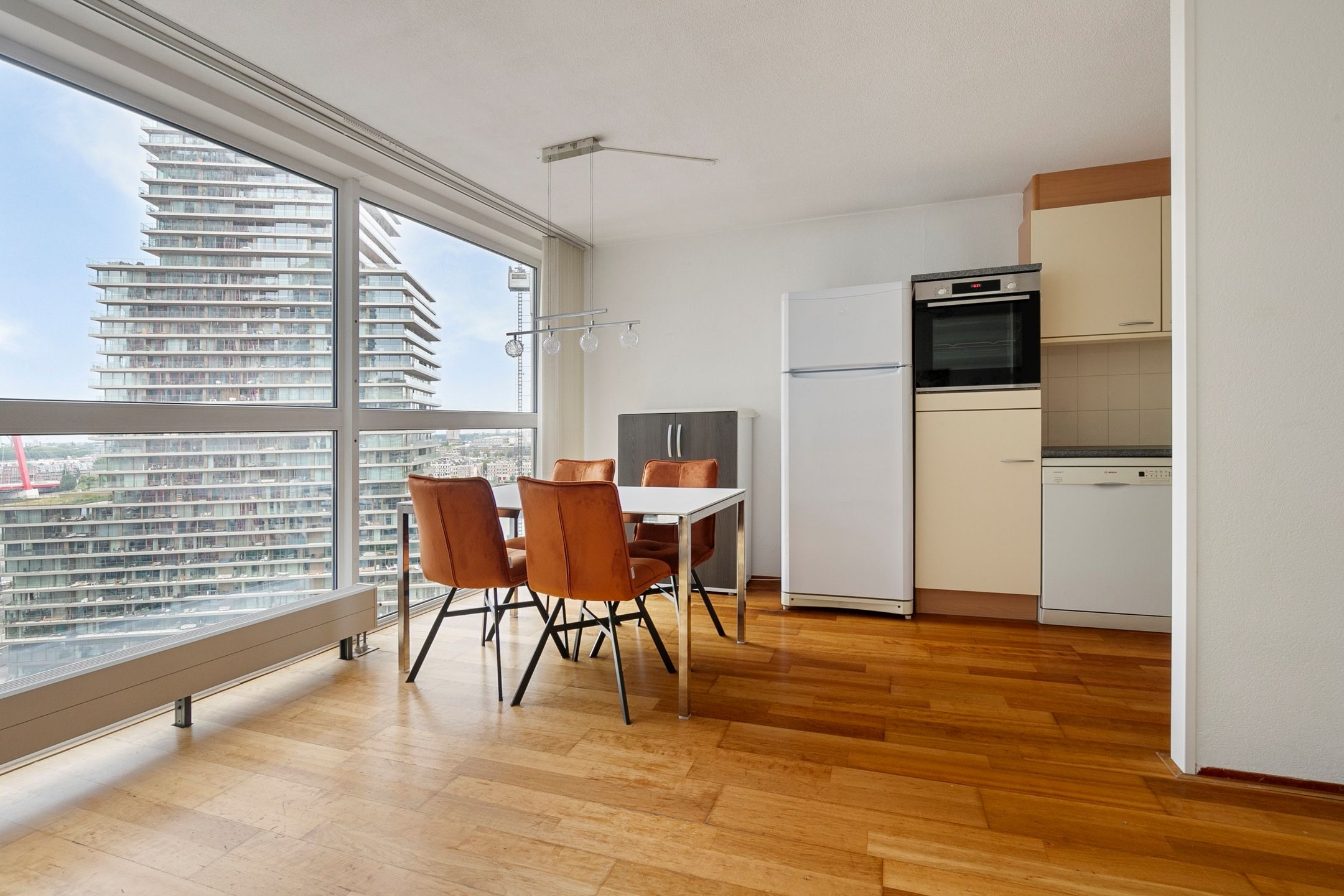 Fantastic view over the city centre of Rotterdam. Furnished three-room apartment on the 15th floor in the Waterstadtoren. All daily facilities within reach with the Coolsingel and the Koopgoot just ar...