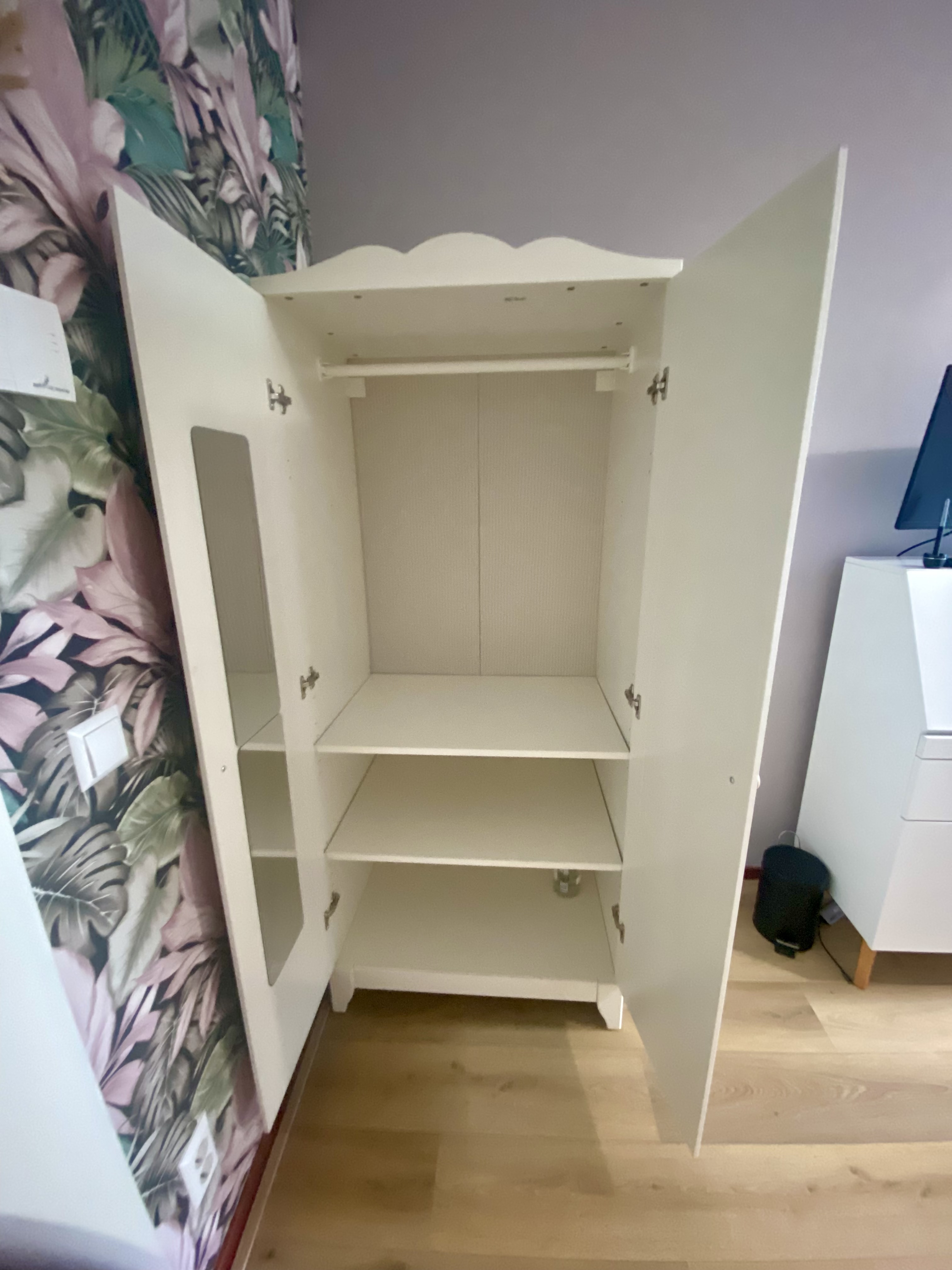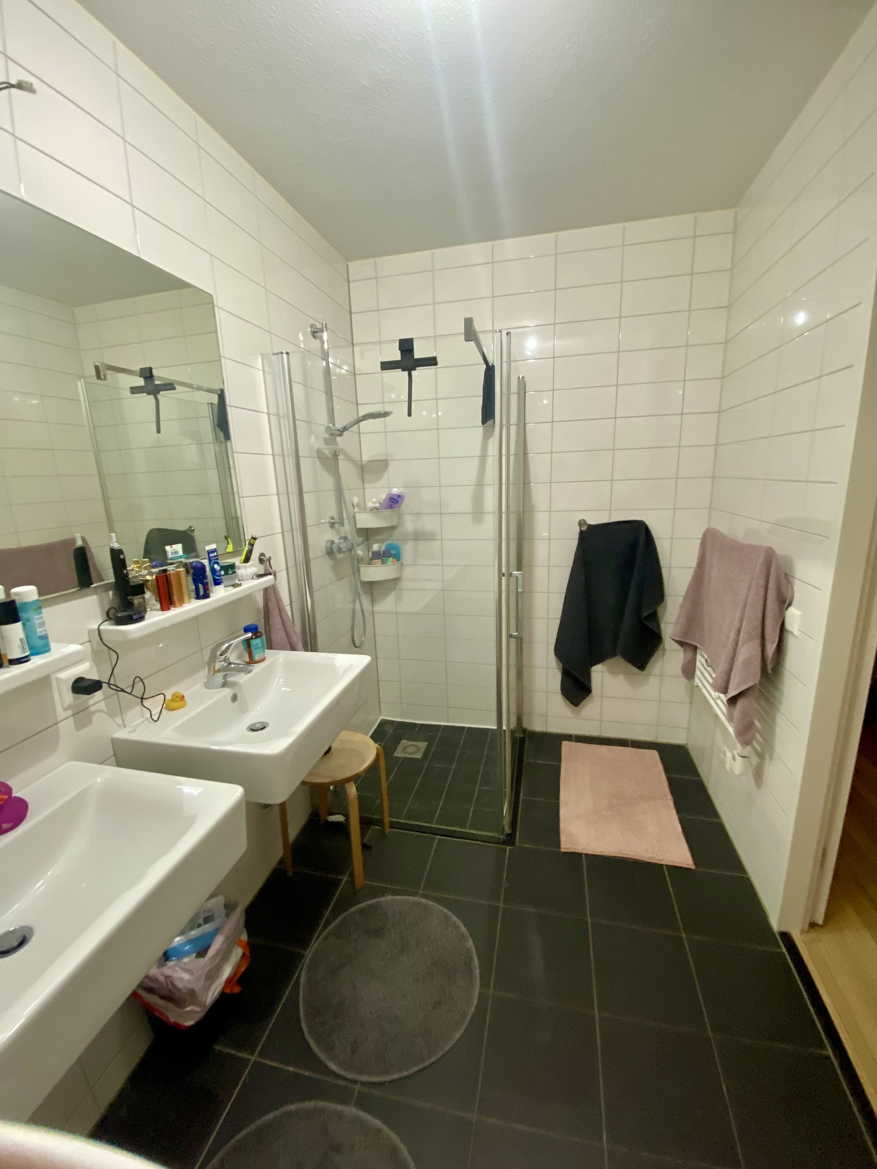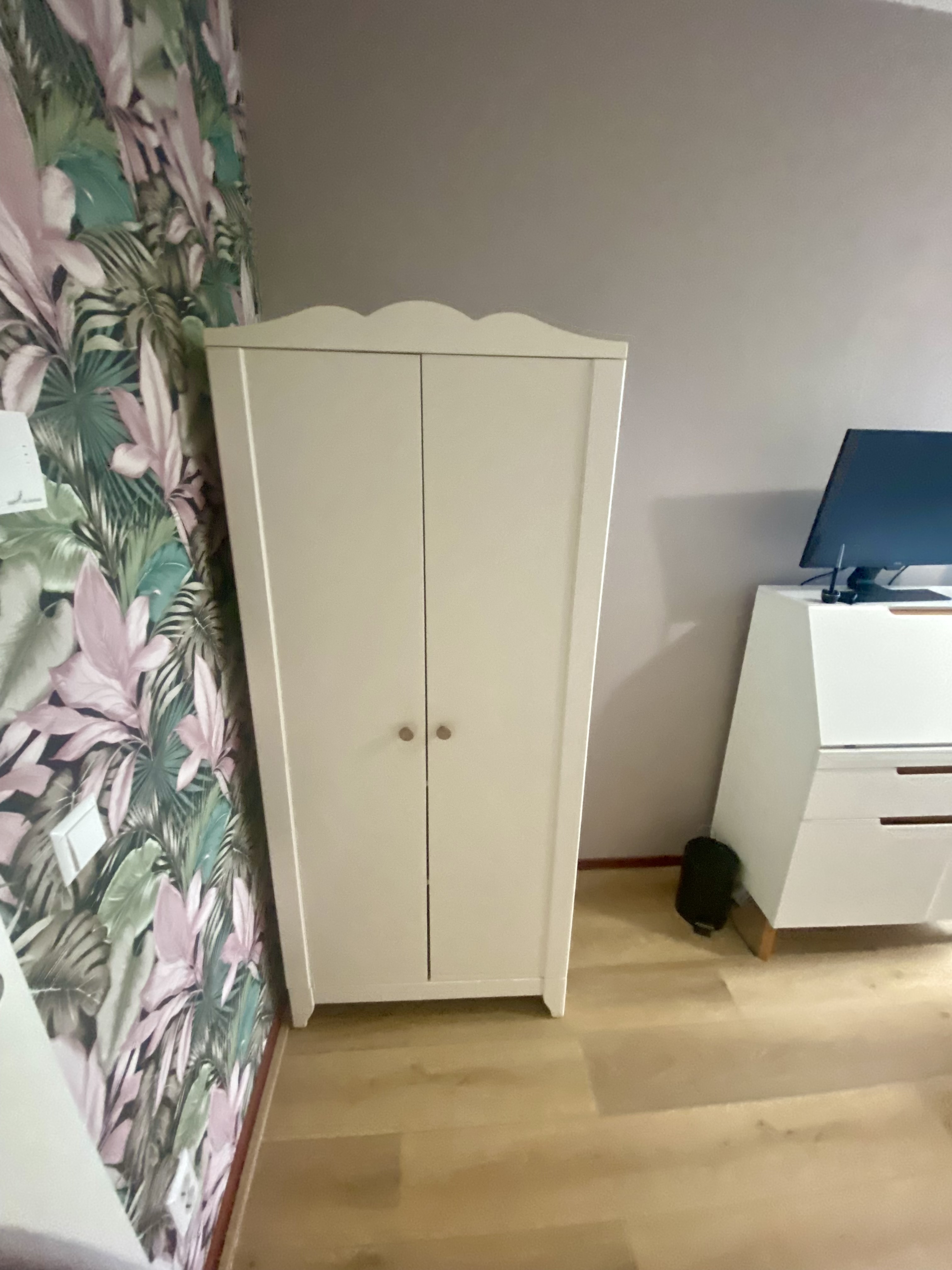 Private room with balcony access in modern tower building. Newly painted and wallpapered. Fully furnished w/ Bed, curtains, wardrobe, end table. Secretary desk shown in photos avail to purchase. Shar...