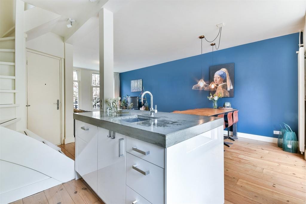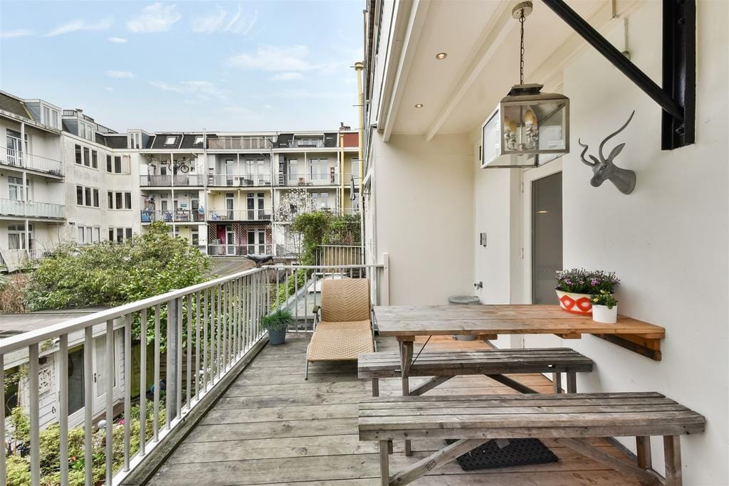 Luxe en goed onderhouden, dubbellaags appartement van 80 m2 met drie slaapkamers, een groot terras op het zuiden, een balkon en twee tea for two balkons. Het huis is lekker licht door de vele ramen. O...