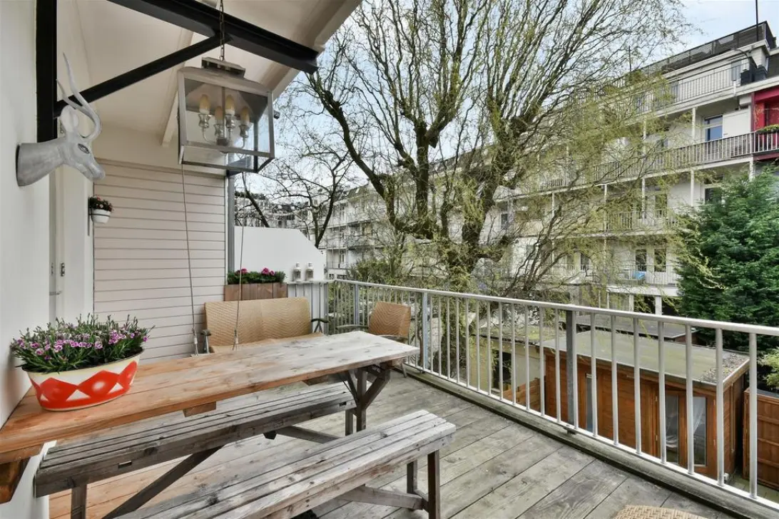 Luxe en goed onderhouden, dubbellaags appartement van 80 m2 met drie slaapkamers, een groot terras op het zuiden, een balkon en twee tea for two balkons. Het huis is lekker licht door de vele ramen. O...