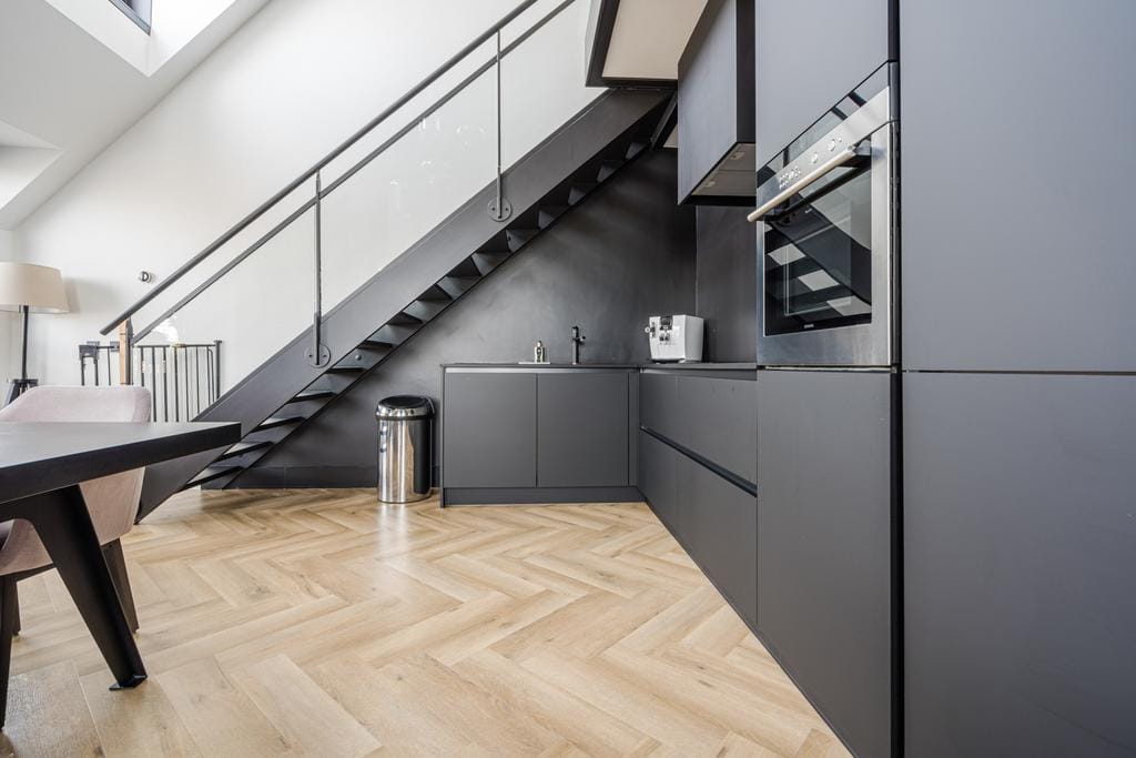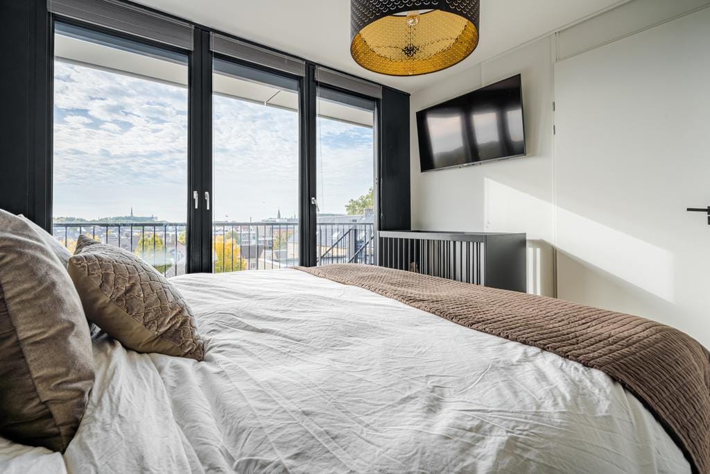 Modern penthouse gelegen op de 4e en 5e verdieping van het appartementengebouw “Loods M” gelegen aan de Nieuwe Mark, midden in het centrum van Breda. Het appartement beschikt over één slaapkamer en ee...