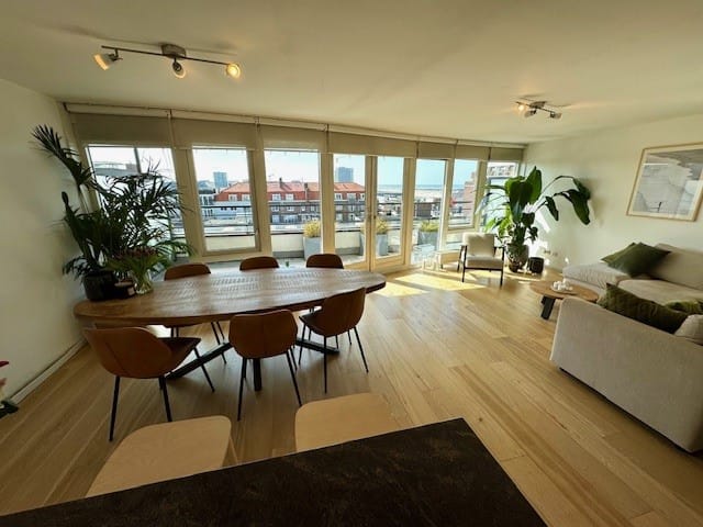 Per 1 April 2026 verhuren wij dit prachtige penthouse van maar liefst 100 m2 (inclusief Balkon), deze woning heeft twee slaapkamers en gelegen op de vijfde verdieping die u met een trap en lift kan be...