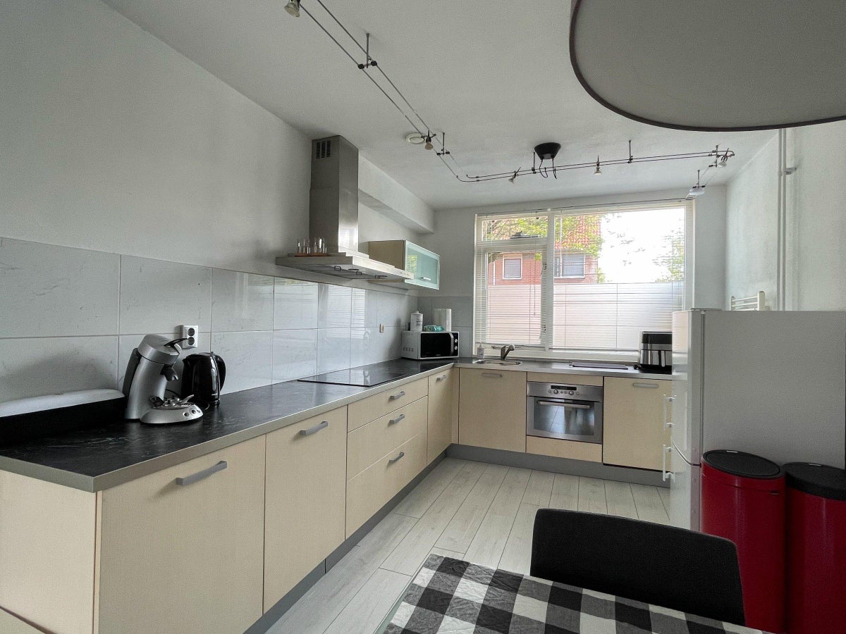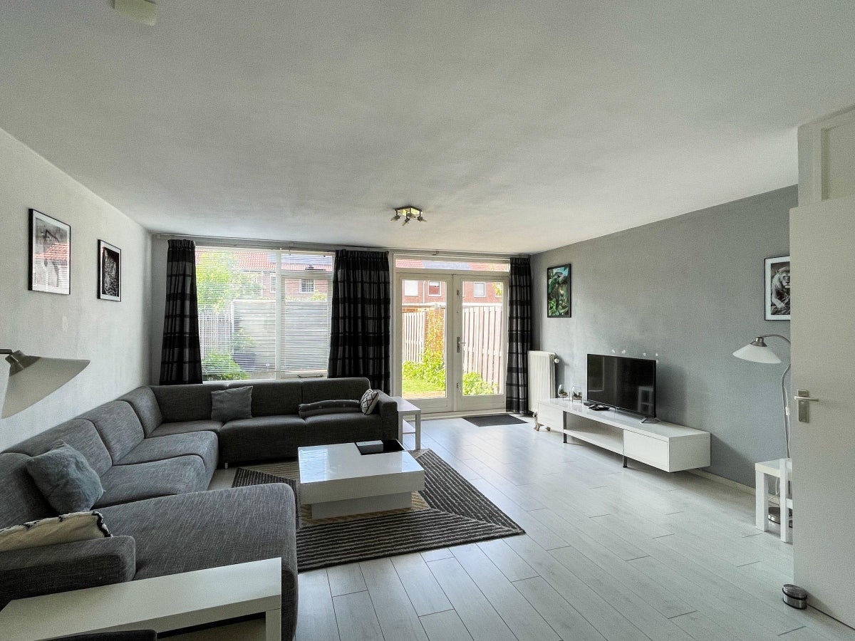 Beschrijving In de midden geliefde Filmwijk gelegen royale tussenwoning met 5 slaapkamers en een zonnige tuin met achterom en een praktische berging. De woning kan gemeubileerd gehuurd worden. De w...