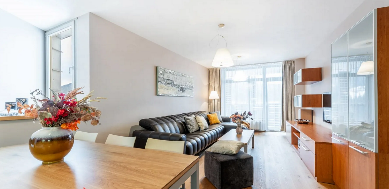This 3 bedroom (3+ rooms) apartment with a total area of 93 m² is located in a modern apartment building in one of the most sought-after areas. From the moment you step inside, you will notice the fee...