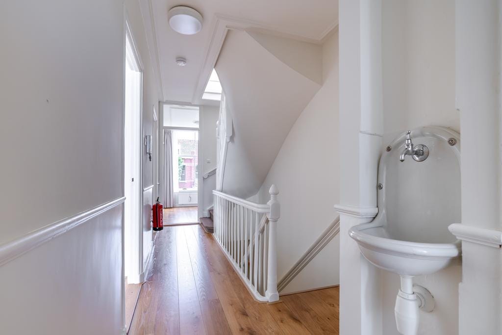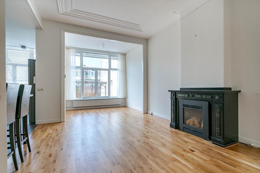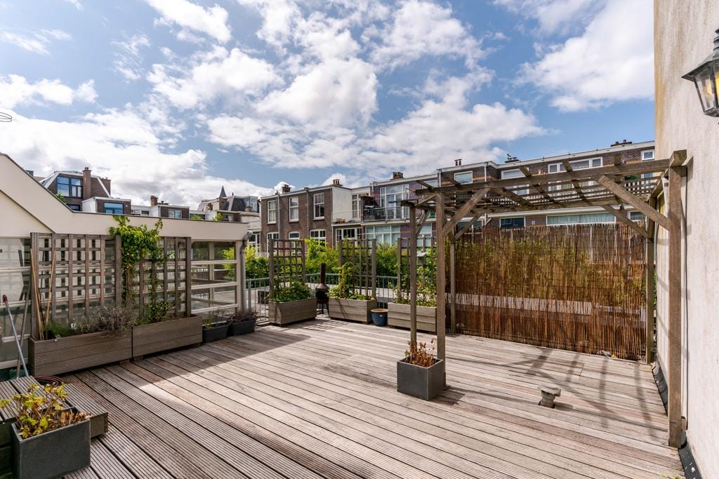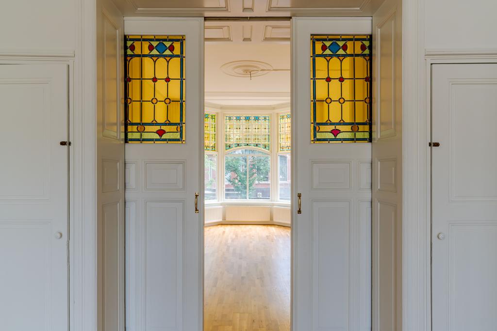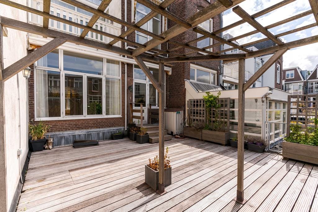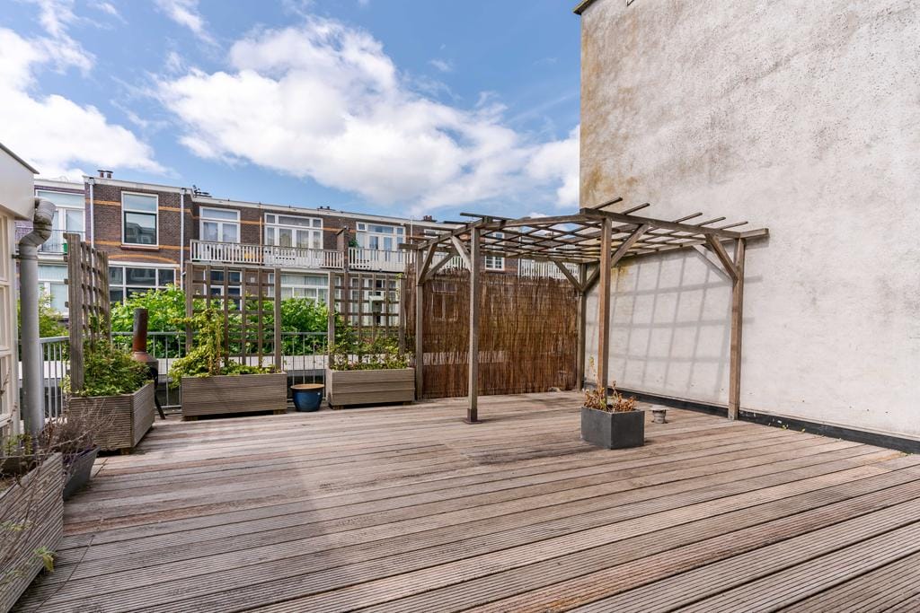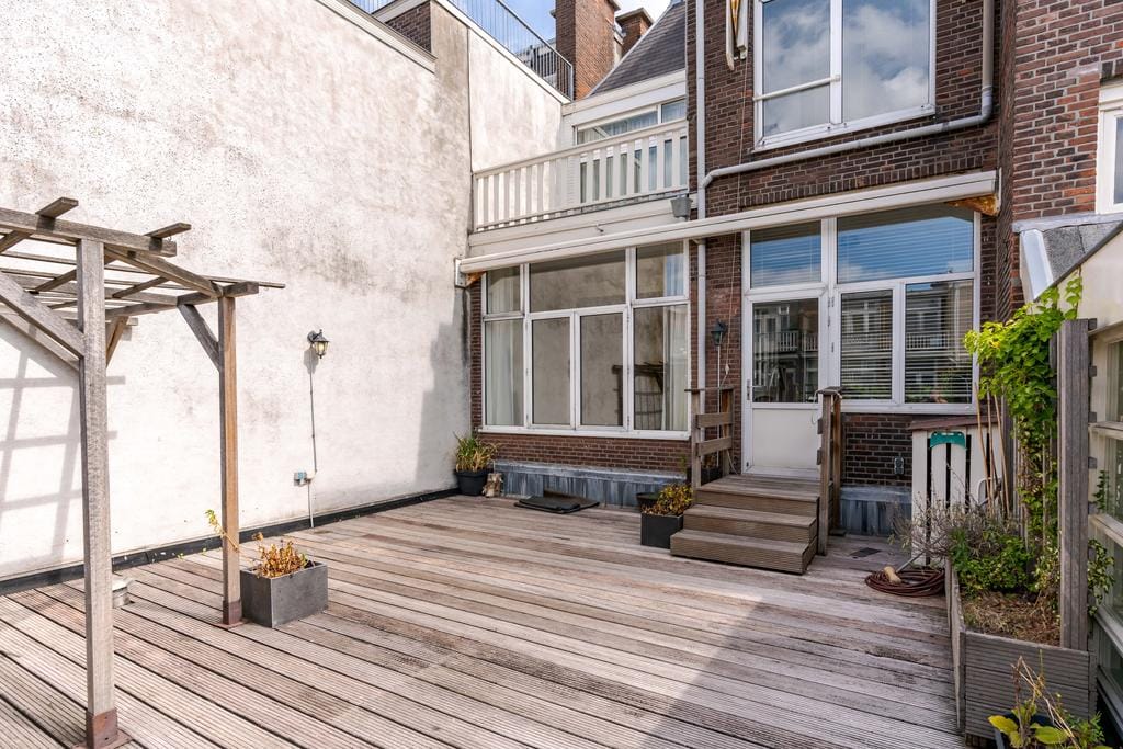 Prachtig karakteristiek gestoffeerd 3-laags bovenhuis met een groot terras van ca. 42 m² op de woonverdieping gelegen in het hart van het Statenkwartier en de Internationale Zone. Entree, trap naar 1e...