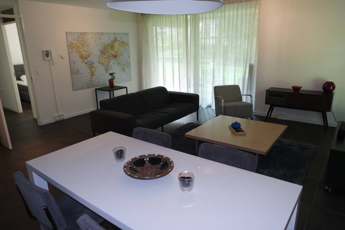 Beschrijving Te huur in Veldhoven nabij ASML, de High Tech Campus en het centrum van Veldhoven ligt dit volledig gemeubileerde 3-kamer appartement op de begane grond met inpandige parkeerplaats, be...