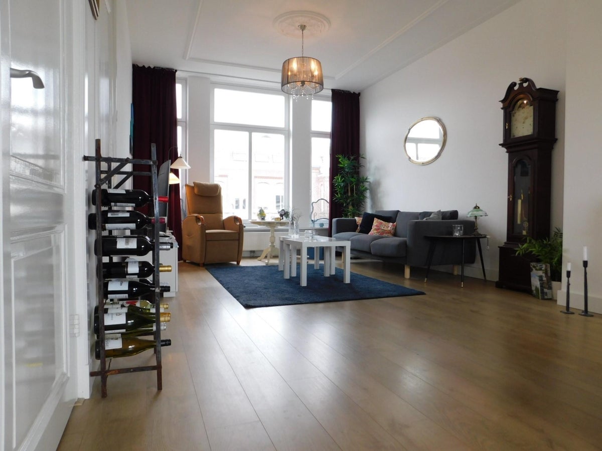Beschrijving Royale bovenwoning in een mooi herenhuis aan een van de mooiste lanen van Breda. Volledig gerenoveerd in ****** woonlagen, 3 slaapkamers en een werkkamer, dakterras. Op loopafstand van...
