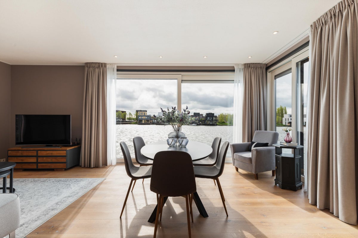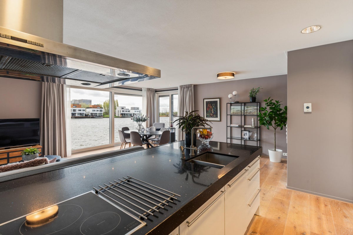 Beschrijving Luxe 4-kamer Water Villa in Amsterdam Deze luxueuze en volledig gemeubileerde waterwoning biedt een mooi ingerichte woonkamer met open keuken, 2 slaapkamers, een kantoor/zitkamer en ee...