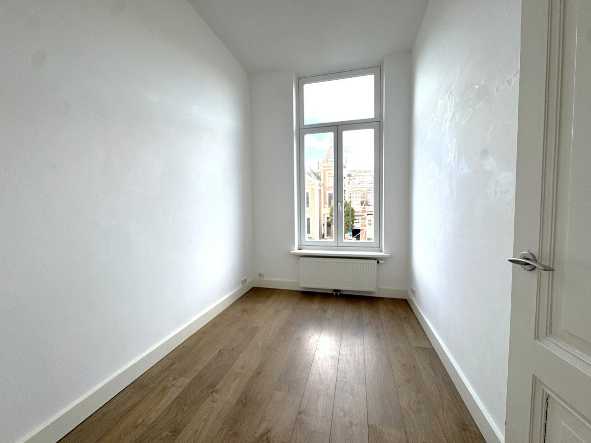 Beschrijving Royale bovenwoning in een mooi herenhuis aan een van de mooiste lanen van Breda. Volledig gerenoveerd in ****** woonlagen, 3 slaapkamers en een werkkamer, dakterras. Op loopafstand van...