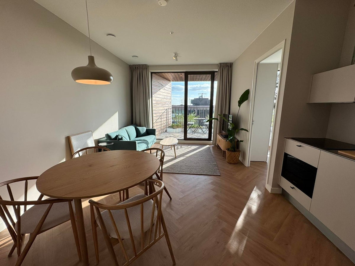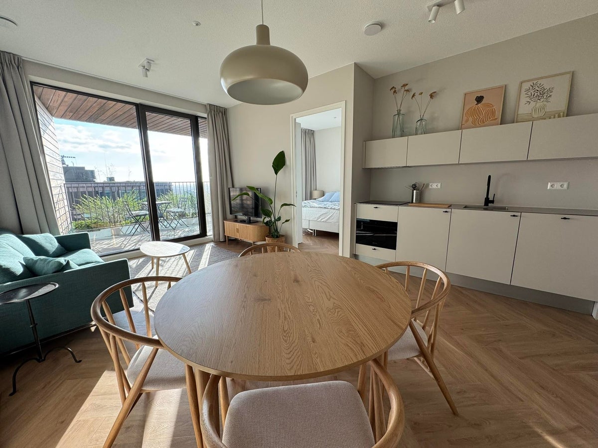 Beschrijving De vele raampartijen in dit GEMEUBILEERDE appartement zorgen voor een ruimtelijke woonbeleving op de 21e verdieping van het gloednieuwe bijzondere appartementengebouw "Wonderwoods". D...