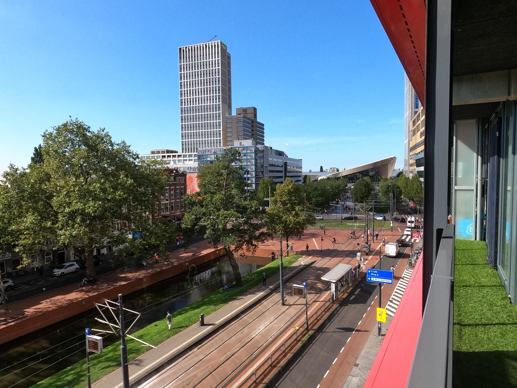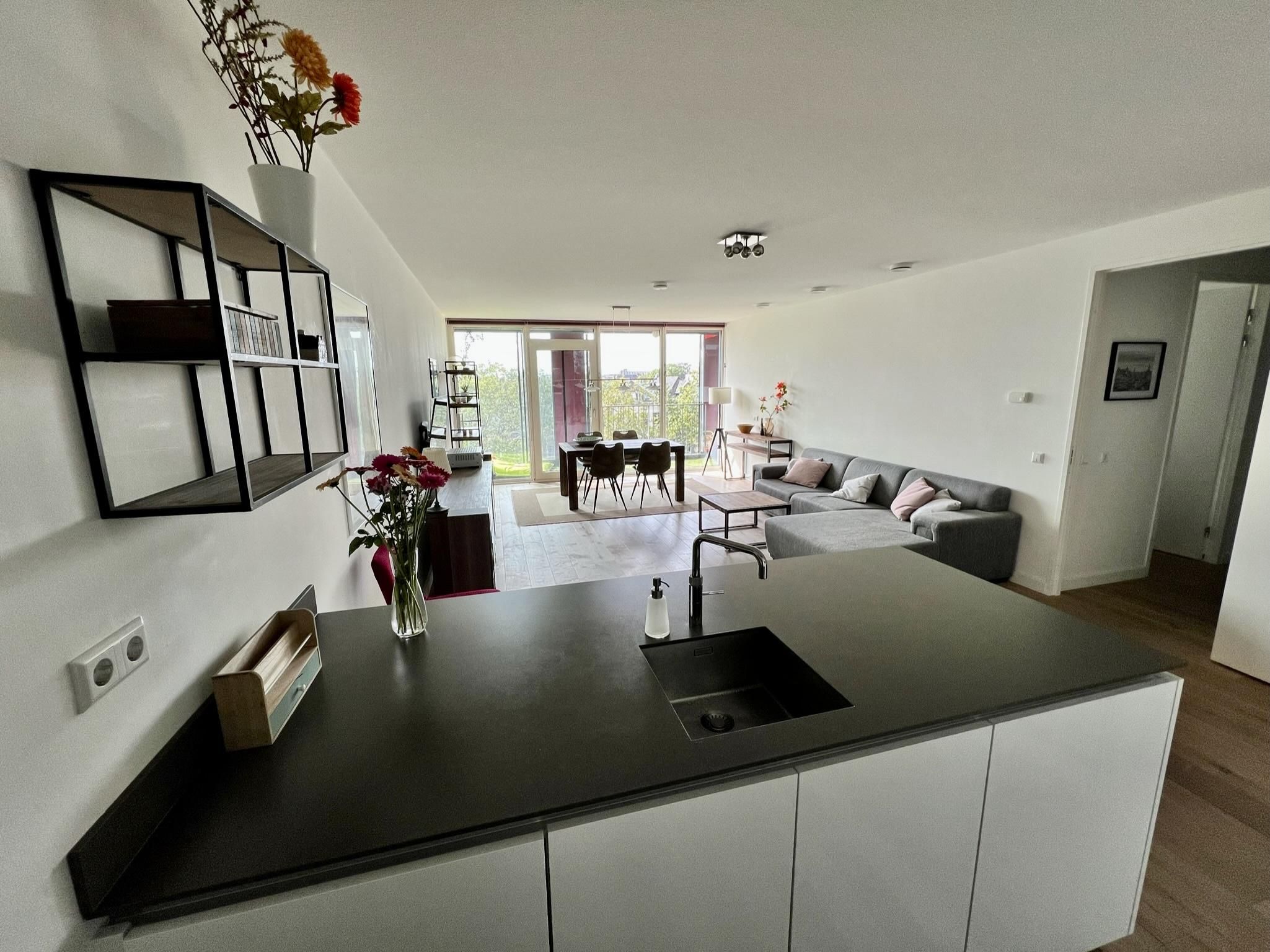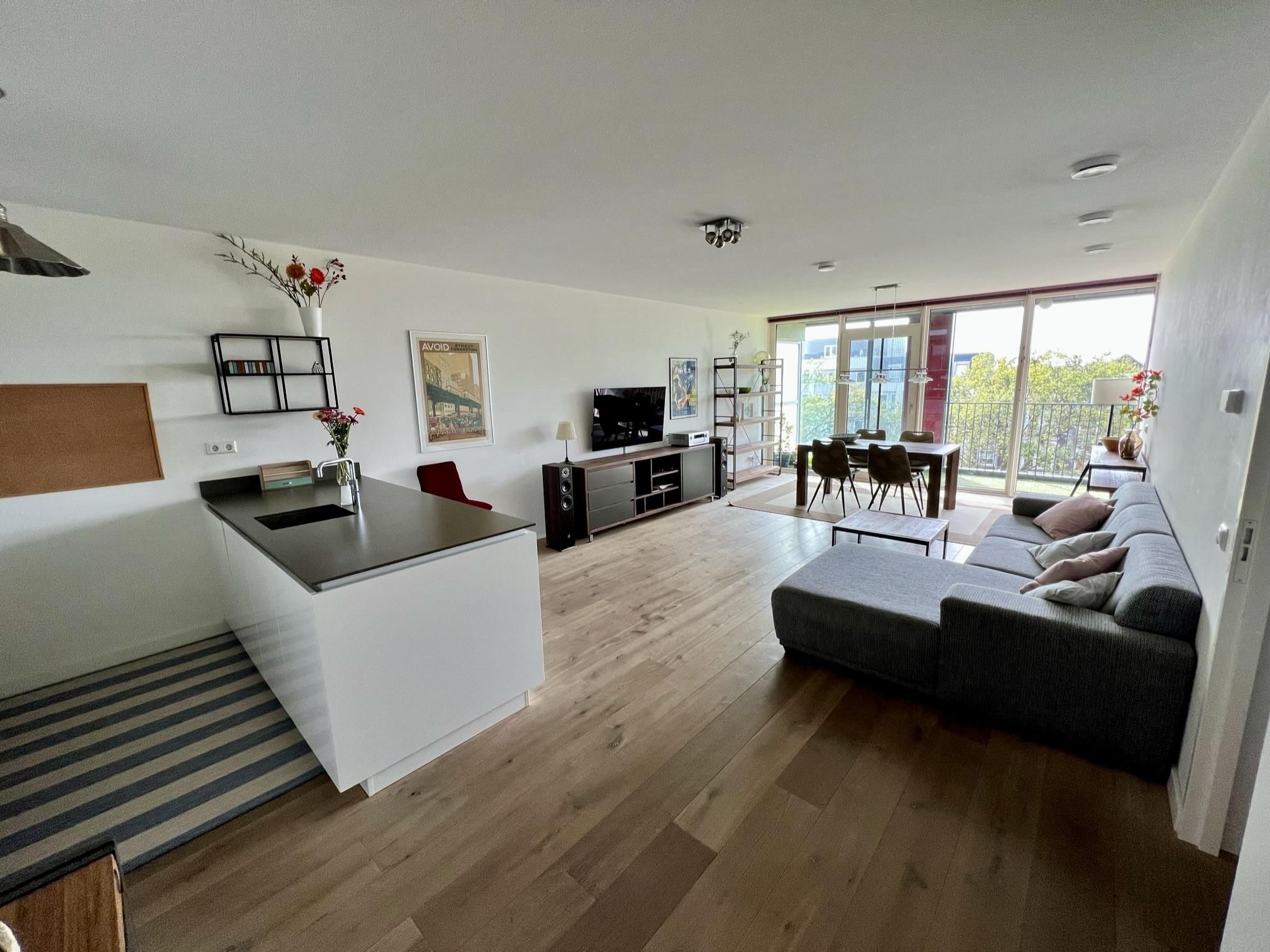 Beschikbaar op de vierde verdieping van het iconische gebouw " de Calypso " in hartje Rotterdam: een luxe, volledig gemeubileerd appartement van 101 m2 met een grote woonkamer voorzien van een open ke...